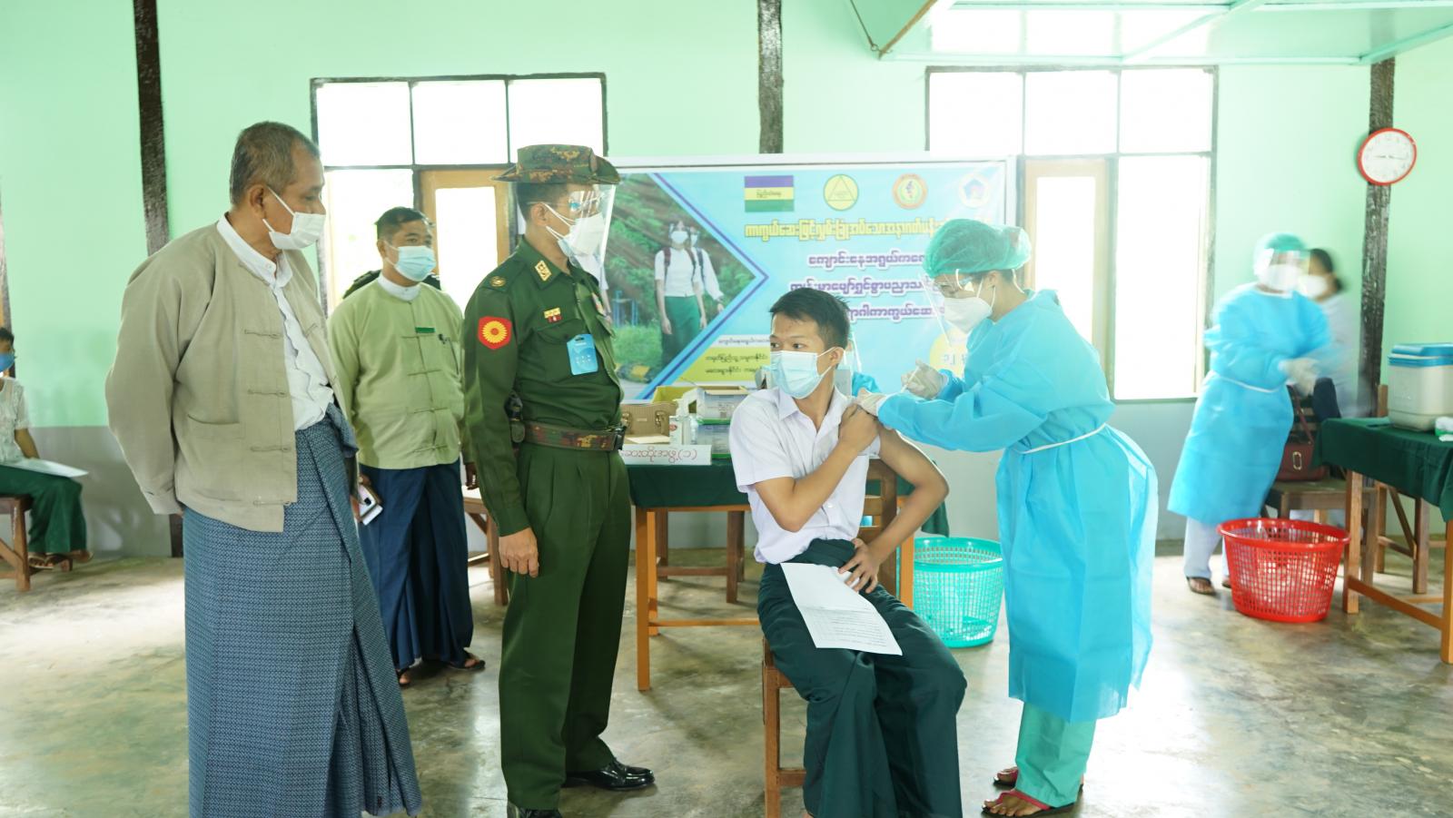 ပအိုဝ်းကိုယ်ပိုင်အုပ်ချုပ်ခွင့်ရဒေသ ဟိုပုံးမြို့၌ အသက်(၁၂)နှစ်နှင့်အထက် ကျောင်းသား/သူများအား  ကိုဗစ်-၁၉  ရောဂါကာကွယ်ဆေး စတင်ထိုးနှံပေး