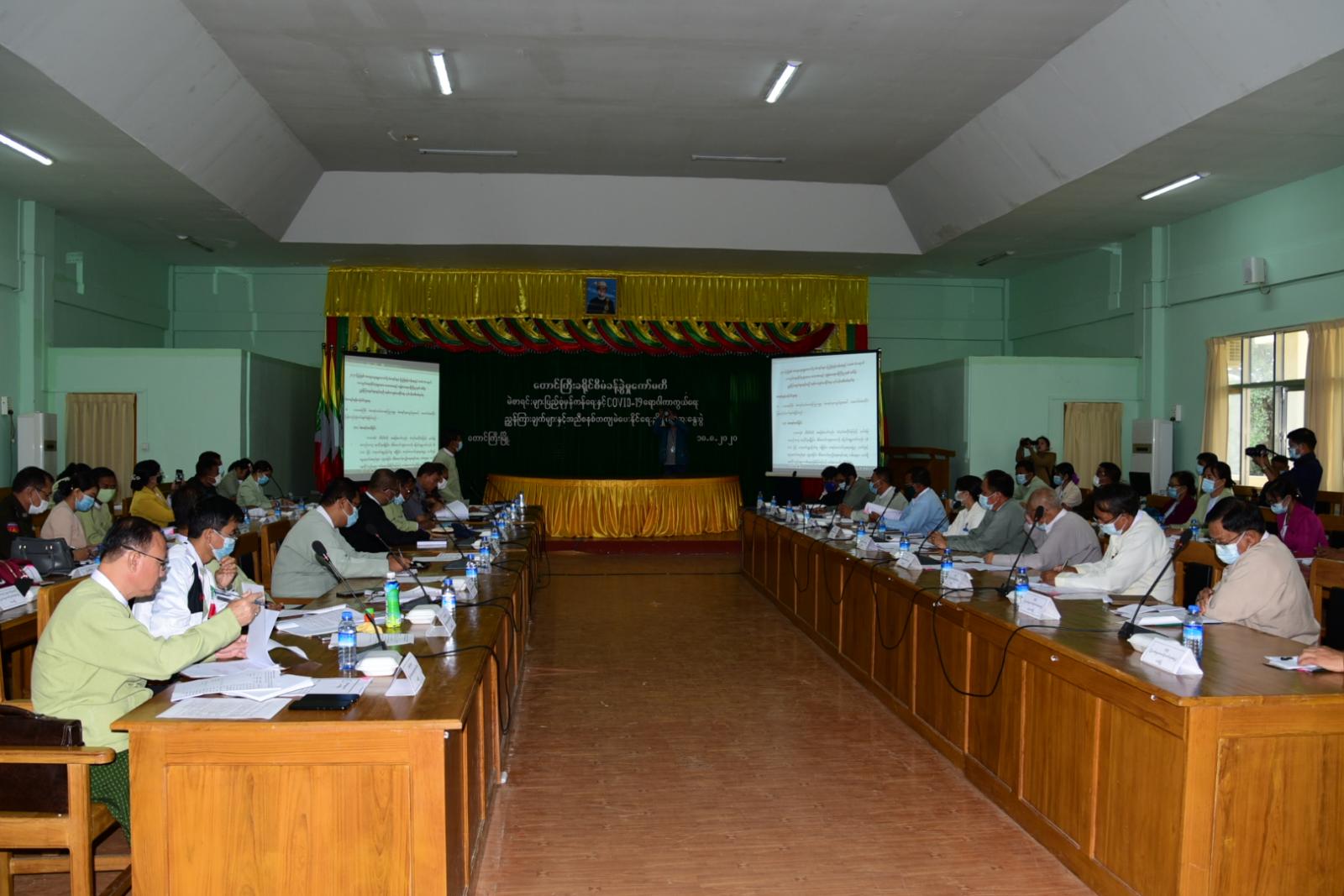 ရှမ်းပြည်နယ်(တောင်ပိုင်း)၊ တောင်ကြီးမြို့နယ်တွင် တောင်ကြီးခရိုင် စီမံခန့်ခွဲမှုကော်မတီက ဦးဆောင်၍ မဲစာရင်းများပြည့်စုံမှန်ကန်ရေးနှင့် ကိုဗစ်-၁၉ ရောဂါ ကာကွယ်ရေး အမိန့် ညွှန်ကြားချက်များနှင့်အညီ မဲပေးနိုင်ရေးအစီအမံများ ရှင်းလင်းဆွေးနွေးပွဲကို ခရိုင်/မြို့နယ် စုပေါင်းရုံးဝင်းအတွင်းရှိ အစည်းအဝေးခန်းမ၌ ယနေ့နံနက် (၁၀)နာရီ က ပြုလုပ်ခဲ့ကြောင်း သိရ သည်။