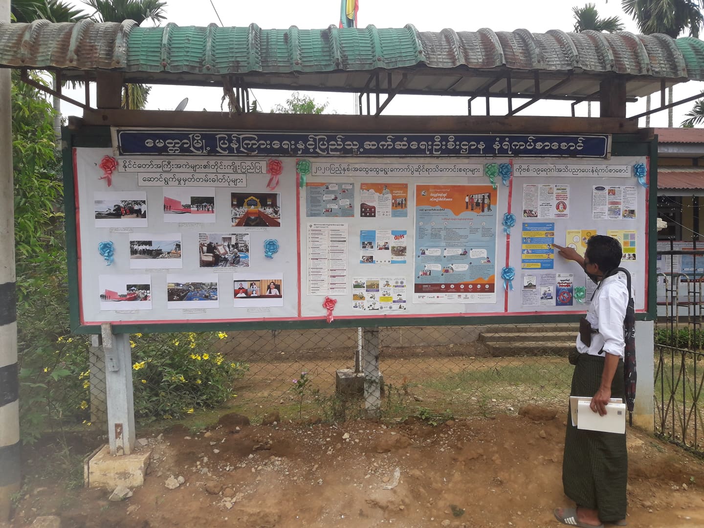 အဆိုပါ အသိပညာပေးနံရံကပ်စာစောင်ပြဘုတ်တွင် နိုင်ငံတော်အစိုးရ၏ တိုင်းကျိုးပြည်ပြုဆောင်ရွက်မှုမှတ်တမ်းဓါတ်ပုံများ၊ ပြည်ထောင်စုရွေးကောက်ပွဲကော်မရှင်မှထုတ်ပြန်ကြေညာချက်များ၊ (၂၀၂၀) ပြည့်နှစ် အထွေထွေရွေးကောက်ပွဲအကြောင်းသိကောင်းစရာများ၊ နေရပ်ဒေသပြောင်းရွှေ့နေထိုင်သူများနှင့် အစိုးရခွင့်ပြုချက်ဖြင့် နိုင်ငံပြင်ပသို့ရောက်ရှိနေသူများ မဲပေးနိုင်ရန်ဆောင်ရွက်ရမည့်အချက်များ၊ မဲဆန္ဒရှင်စာရင်း ကြည့်ရှုရန်နှိုးဆော်ချက်များ၊ မကြာခဏမေးလေ့မေးထရှိသော မဲဆန္ဒရှင်စာရင်းဆိုင်ရာ မေးခွန်း၊ အဖြေများနှင့် ကိုဗစ်-၁၉ရောဂါ အသိပညာပေးစာစောင်တို့ကို ထည့်သွင်းပြသထားကြောင်း သိရသည်။