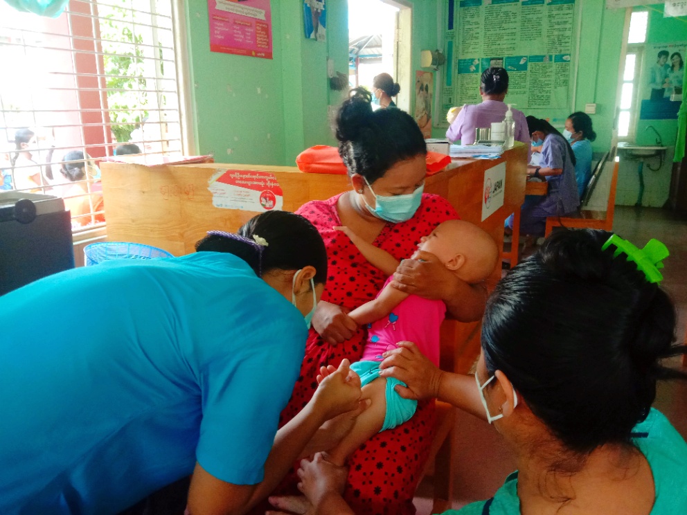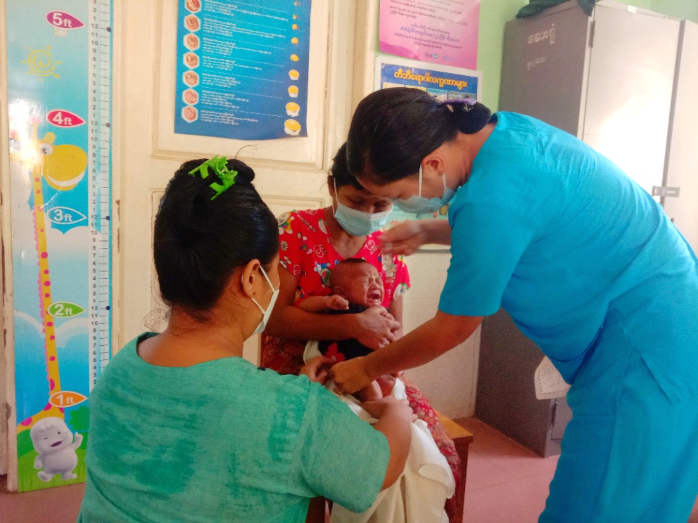 ရန်ကုန်တိုင်းဒေသကြီး တောင်ပိုင်းခရိုင် သုံးခွမြို့နယ် ကျန်းမာရေးဦးစီးဌာန မိခင်နှင့်ကလေးကျန်းမာရေးဌာန၌ ယနေ့နံနက် ၉ နာရီက မွေးကင်းစမှ (၂) နှစ်အောက် ကလေးငယ်များနှင့် ကိုယ်ဝန်ဆောင်မိခင်များအား လစဉ်ပုံမှန် ကာကွယ်ဆေး ထိုးနှံတိုက်ကျွေးခြင်းများ ဆောင်ရွက်ခဲ့သည်။