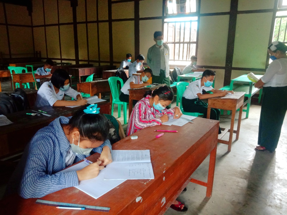 ၂၀၂၁-၂၀၂၂ပညာသင်နှစ်အတွက် အခြေခံပညာကျောင်းများကို ဇွန်လ(၁)ရက်နေ့မှ စတင်သင်ကြားပေးလျက်ရှိရာ ကိုဗစ်-၁၉ ရောဂါ ကူးစက်ပြန့်ပွားမှု မြင့်မားလာသည့်အတွက် ဇူလိုင် (၉)ရက်နေ့တွင် စာသင်ကျောင်းများကို ခတ္တယာယီပိတ်ထားခဲ့ပါသည်။ ယခုအခါ ကျောင်းသားလူငယ်များ ပျော်ရွှင်ချမ်းမြေ့စွာ တက်ရောက်နိုင်ရေးအတွက်" ကာကွယ်ဆေးဖြင့် လွှမ်းခြုံအပ်သော အနာဂတ်ပန်းခင်းများဆီသို့" ဆောင်ပုဒ်နှင့်အညီ ကျောင်းသား/သူများ ပျော်ရွှင်စွာ လာရောက်ကျောင်း တက်ရောက်နိုင်ရေးအတွက် စက်တင်ဘာ(၁၇)ရက်နေ့မှ (၁၉)ရက်နေ့အထိ ကျောင်းသား/သူ(၂၅၆၁)ဦးအား ကာကွယ်ဆေးများ ပထမအကြိမ် ထိုးနှံပေးပြီးဖြစ်ရာ ကျောင်းသား/သူများအနေဖြင့် ကိုဗစ်-၁၉ ရောဂါကူးစက်မှုကို ကာကွယ် ထိန်းချုပ်နိုင်ပြီး ရောဂါကျဆင်းလာသည့်အတွက် ယနေ့ နို၀င်ဘာ(၁)ရက်နေ့တွင် ကျောင်းများပြန်လည်ဖွင့်လှစ် ခဲ့ခြင်းဖြစ်သည်။ ထိုသို့ကျောင်းသား/သူများ ကျောင်းစတင်တက် ရောက်ပညာ သင်ကြားရာတွင် ကိုဗစ်-၁၉ ရောဂါကူး စက်ပြန့်ပွားမှုမဖြစ်ပွားစေရေးနှင့် ကြိုတင် ကာကွယ်ရေးအတွက် ကျန်းမာရေးနှင့်အားကစား ဝန်ကြီးဌာန၏ လမ်းညွှန်ချက်များနှင့်အညီ Social Distancing စနစ်ဖြင့် စာသင်ခန်းအတွင်းလူတစ်ဦးနှင့်တစ်ဦး လေးပေအကွာတွင် တည်ရှိစေပြီး face shield နှင့် နှာခေါင်းစည်းများ တပ်ဆင်လာစေခြင်း၊ လက်ဆေးဘေစင်များ ဆောင်ရွက်ထားရှိ ပေးထားကြောင်းသိရသည်။