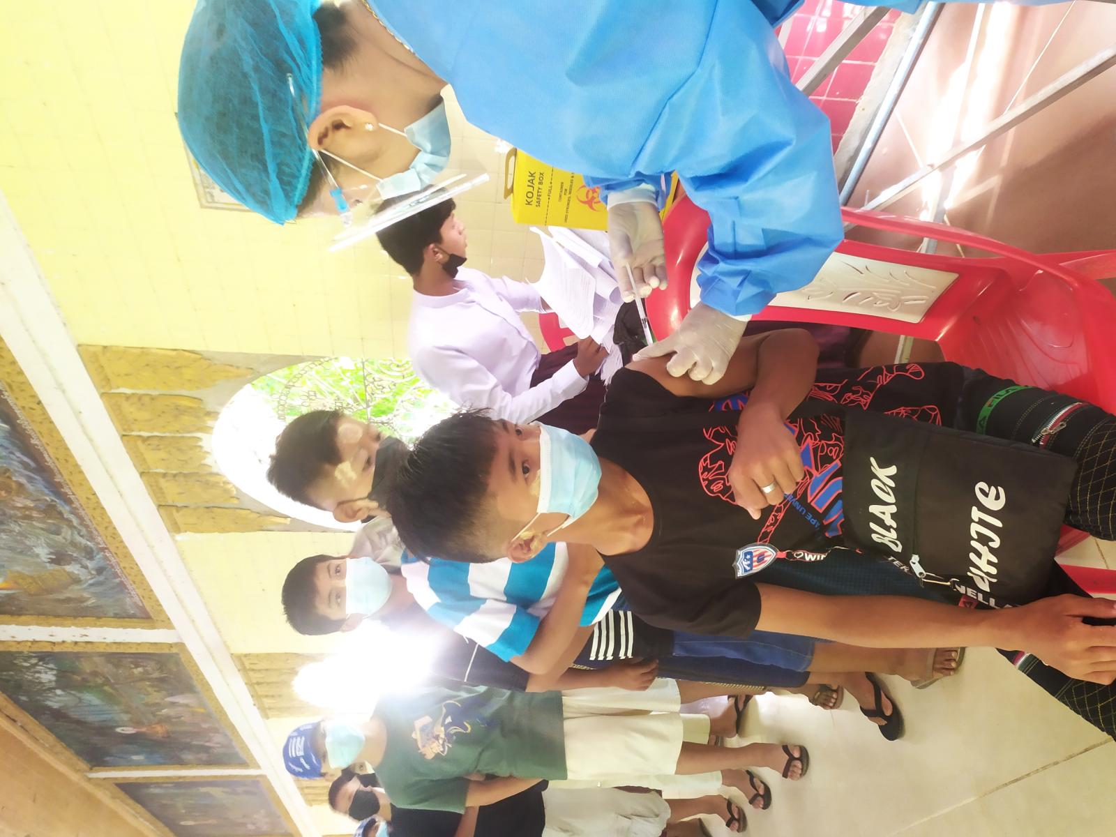ကာကွယ်ဆေးထိုးနံပေးရာတွင် မြို့နယ်စီမံအုပ်ချုပ်ရေးအဖွဲ့၏စီစဉ်မှုဖြင့် ဒုမြို့နယ် အုပ်ချုပ်ရေးမှူး ဦးစန်းယုန်းနှင့် ဝန်ထမ်းများ၊ ဆရာဆရာမများ၊ မီးသတ်တပ်ဖွဲ့ဝင်များ၊ ရဲတပ်ဖွဲ့ဝင်များ၊ မြို့နယ်ကြက်ခြေနီတပ်ဖွဲ့နှင့် စေတနာ့ဝန်ထမ်းများက ကူညီဆောင်ရွက် ပေးခဲ့ကြပြီး၊ မြို့နယ်ပြည်သူ့ကျန်းမာရေးဦးစီးဌာနမှ ဒေါက်တာသဲဝတ်ရည်ထွန်းနှင့် ကျန်းမာရေး ဝန်ထမ်းများက ကျောင်းသား/ကျောင်းသူများအား ကိုဗစ်-၁၉ ရောဂါကာကွယ်ဆေး ထိုးနှံပေးခဲ့ကြသည်။