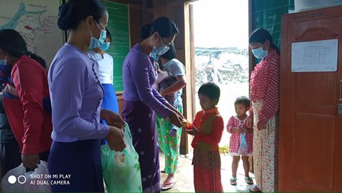 ဆက်လက်၍ မိခင်နှင့်ကလေး စောင့်ရှောက်ရေးအသင်းဥက္ကဋ္ဌနှင့် အဖွဲ့ဝင်တို့က အသက်(၅)နှစ်အောက် ကလေးငယ် များအား အာဟာရဓာတ်ဖြည့် အစာများ ပေးဝေခဲ့ကြသည်။