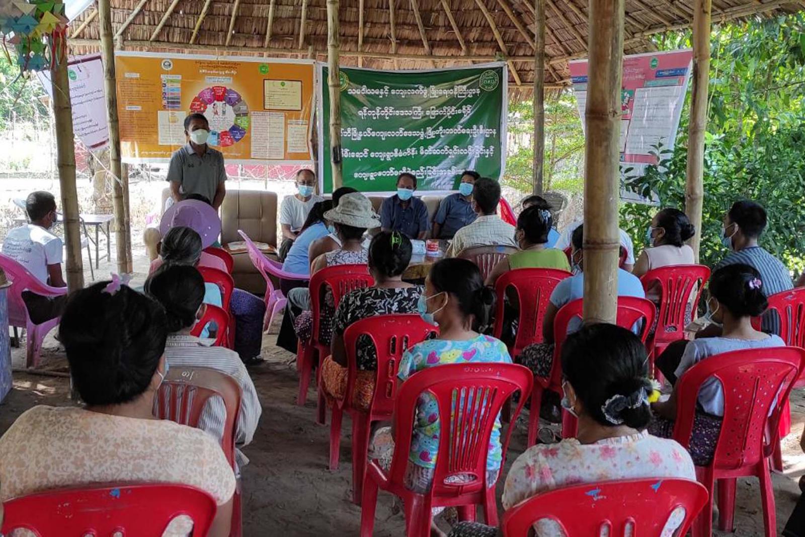 ကျေးရွာနေ ပြည်သူများနှင့် တွေ့ဆုံရာတွင်လည်း မြိုနယ်ဦးစီးမှူး ဦးတင်စိုးက မြစိမ်းရောင် ကျေးရွာစီမံကိန်း ဆောင်ရွက်သည့် ကျေးရွာတစ်ရွာလျှင် အရင်းမပျောက်လည်ပတ်ရန်ပုံ ငွေကျပ်သိန်း(၃ဝဝ)ကို ထောက်ပံ့ပေးသွားမည် ဖြစ်ပါကြောင်း၊ စီမံကိန်းရန်ပုံငွေဖြင့် ကျေးရွာနေ ပြည်သူများ စိုက်ပျိုးရေး၊ မွေးမြူရေး၊ ကုန်ထုတ်လုပ်ငန်း လုပ်ကိုင်ရေးနှင့် အခြားအသက်မွေးဝမ်းကျောင်း လုပ်ငန်းများကို လုပ်ကိုင်နိုင်မည်ဖြစ်ကြောင်း၊ စီမံကိန်း အတိုးရငွေဖြင့်လည်း ကျေးရွာဖွံ့ဖြိုးရေး လုပ်ငန်းများကို ဆောင်ရွက်သွားနိုင်မည့် စီမံကိန်း ဖြစ်ပါကြောင်း မိတ်ဆက်ရှင်းလင်း ပြောကြားခဲ့ကာ ကျေးရွာအမှိုက်ကင်းစင် ရေးလုပ်ငန်းများကိုပါ စည်းရုံးဆောင်ရွက်ခဲ့ပြီး ကျေးရွာနေ ပြည်သူများမှ စီမံကိန်း ဆောင်ရွက် သွားနိုင်ရန်အတွက် ကျေးရွာကော်မတီဝင် (၇)ဦးတို့ကို မဲပေးရွေးချယ် ခဲ့ကြကြောင်း လည်း သိရသည်။