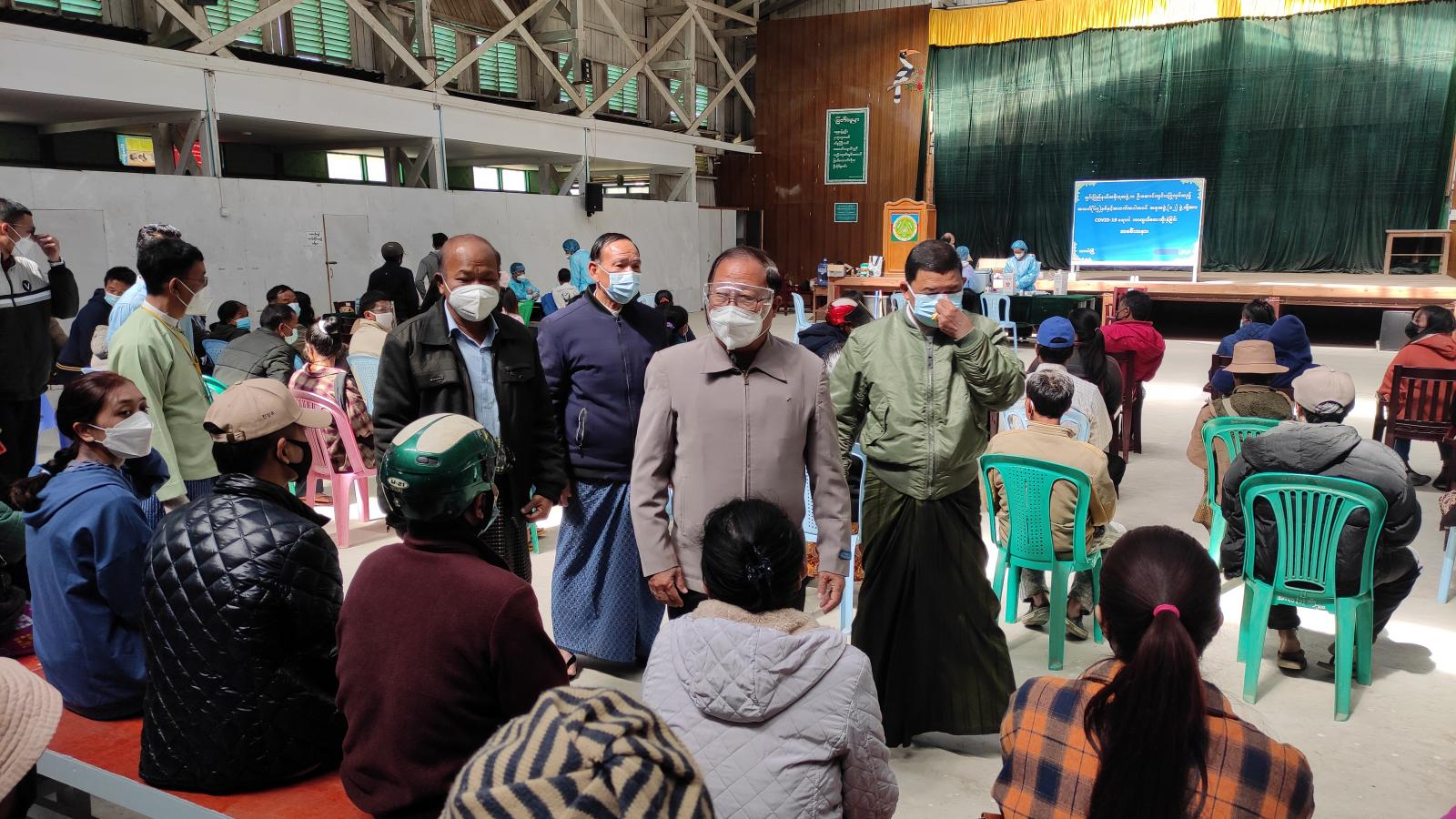 ထိုသို့ ကိုဗစ်−၁၉ ရောဂါ ကာကွယ်ဆေး ထိုးနှံပေးမှုအခြေအနေ ကြည့်ရှုအားပေးရာတွင် ပြည်နယ်ဝန်ကြီးချုပ်နှင့်အတူ ပြည်နယ်သယံဇာတရေးရာဝန်ကြီး ဦးကျော်ငြိမ်း၊ တိုင်းရင်းသား ရေးရာဝန်ကြီး ဦးစိန်ထွန်းလှနှင့် ခရိုင်စီမံအုပ်ချုပ်ရေး အဖွဲ့ဥက္ကဋ္ဌ ဦးအောင်ကိုဦးနှင့် မြို့နယ်စီမံအုပ်ချုပ်ရေးအဖွဲ့ဥက္ကဋ္ဌတို့ လိုက်ပါခဲ့ပြီး ပြည်နယ်ဝန်ကြီးချုပ်က ကာကွယ်ဆေး လာရောက်ထိုးနှံကြသည့် မိဘပြည်သူများအား ကိုဗစ်−၁၉ ရောဂါ ကာကွယ်ဆေးထိုးနှံရခြင်းအားဖြင့် ရရှိနိုင်သည့် အကျိုးကျေးဇူးများကိုရှင်းပြ၍ ကာကွယ်ဆေးထိုးနှံရာတွင် ပါဝင်သည့် မြို့နယ်ပြည်သူ့ဆေးရုံမှ ကျန်းမာရေးဝန်ထမ်းများ၊ တပ်မတော်အထူးကုဆရာဝန်များနှင့် စေတနာ့ဝန်ထမ်းများအတွက် ထောက်ပံ့ငွေများ ပေးအပ်သည်။