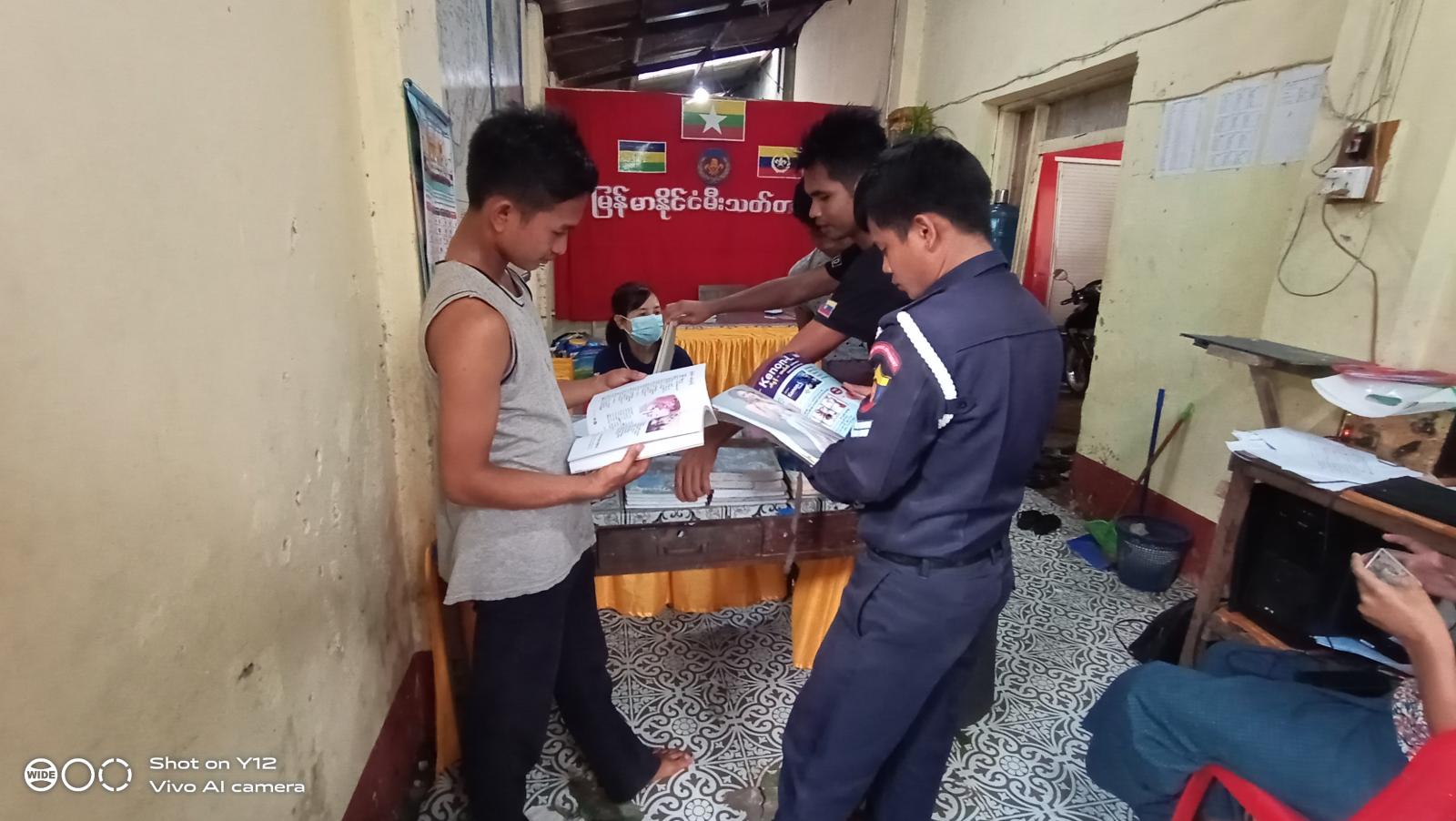 ဧရာဝတီတိုင်းဒေသကြီး၊ ဖျာပုံခရိုင်၊ ဒေးဒရဲမြို့နယ် ပြန်ကြားရေးနှင့်ပြည်သူ့ဆက်ဆံရေး ဦးစီးဌာန၊ ဝန်ထမ်းများက ယနေ့နံနက် (၁၀)နာရီက မြို့နယ်မီးသတ်တပ်ဖွဲ့ရုံးသို့ မိုဘိုင်းစနစ်ဖြင့် စာအုပ်များ ကွင်းဆင်း ငှားရမ်းပေးခဲ့သည်။
