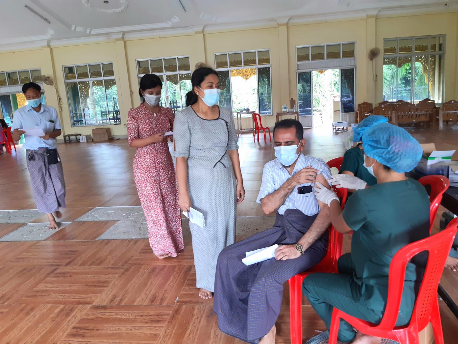 မြို့နယ်အတွင်း ကိုဗစ်- ၁၉ ရောဂါ ကာကွယ်ဆေးထိုးနှံပေးခြင်းလုပ်ငန်းများအား မြို့နယ်အထွေထွေ အုပ်ချုပ်ရေးဦးဌာနမှ တာဝန်ရှိသူများ၊ ကျန်းမာရေးဝန်ထမ်းများ၊ ဌာနဆိုင်ရာများ၊ ရဲတပ်ဖွဲ့ဝင်များ၊ မီးသတ် တပ်ဖွဲ့ဝင်များ၊ ကြက်ခြေနီတပ်ဖွဲ့ဝင်များ၊ ရပ်ကွက်နှင့်ကျေးရွာ အုပ်ချုပ်ရေးမှူးများနှင့် ပရဟိတလူမှုရေးအသင်း အဖွဲ့များက ပူးပေါင်းကူညီဆောင်ရွက်ပေးလျက်ရှိကြောင်း သိရသည်။
