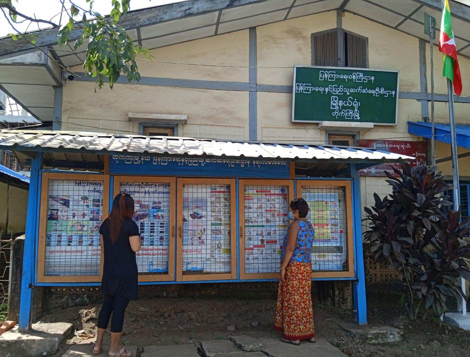 ရန်ကုန်တိုင်းဒေသကြီး မြောက်ပိုင်းခရိုင် တိုက်ကြီးမြို့နယ် ပြန်ကြားရေးနှင့်ပြည်သူ့ဆက်ဆံရေး ဉီးစီးဌာနရုံးရှေ့ မြေစိုက်ဘုတ်တွင် ပြည်သူများအနေဖြင့် အလွယ်တကူဖတ်ရှုနိုင်ပြီး အသိပညာ ဗဟုသုတ တိုးပွားစေရေး ရည်ရွယ်၍ အသိပညာပေးနံရံကပ်စာစောင်များကို ပြသဆောင်ရွက်လျက်ရှိရာ ယနေ့ နံနက် ပိုင်းအချိန်က ယာဉ်စည်းကမ်း လမ်းစည်းကမ်းဆိုင်ရာ အသိပညာပေး နံရံကပ်စာစောင် နှင့် မီးဘေးကြိုတင်ကာကွယ်ရေး အသိပညာပေး နံရံကပ်စာစောင်များကို ပြသဆောင်ရွက်ထား ကြောင်း သိရသည်။