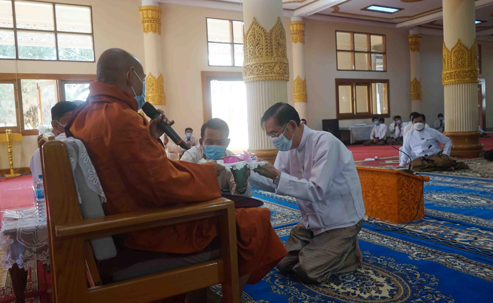 ထို့နောက် ဆရာတော် ၊ သံဃာတော်အရှင်သူမြတ်တို့က ပရိတ်တရားတော်များ ရွတ်ပွားသရဇ္စျာယ် ချီးမြှင့်တော်မူပြီး ကယားပြည်နယ်အစိုးရအဖွဲ့ ၊ ပြည်နယ်ဝန်ကြီးချုပ် ဦးခင်မောင်ဦးက သာသာနာရေးဆိုင်ရာများ လျှောက်ထားတော်မူခဲ့သည်။