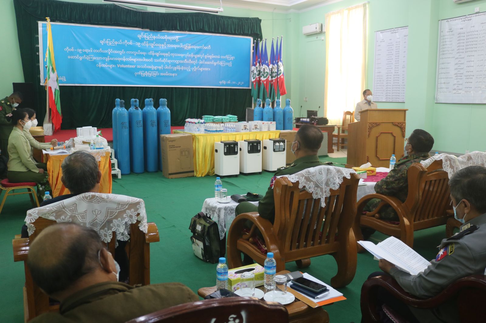 ရှေးဦးစွာ ချင်းပြည်နယ် ကိုဗစ်-၁၉ ထိန်းချုပ်ရေးနှင့် အရေးပေါ်တုံ့ပြန်ရေး ကော်မတီဥက္ကဋ္ဌ၊ ပြည်နယ်ဝန်ကြီးချုပ် ဦးငွန်ဆန်းအောင်က ချင်းပြည်နယ်တွင် ကိုဗစ်-၁၉ရောဂါ တတိယလှိုင်းကို မေ(၂၇)ရက်နေ့တွင် ကျီခါးမြို့၌ စတင်ဖြစ်ပွားခဲ့ပါကြောင်း၊ ကိုဗစ်-၁၉ရောဂါ ကာကွယ် ထိန်းချုပ်ရေးနှင့် ကုသရေးလုပ်ငန်းများ ဆောင်ရွက်ရာတွင် စိန်ခေါ်မှုနှင့် အခက်အခဲ မြောက်များစွာ ကြုံတွေ့ခဲ့ရပါကြောင်း၊ ကိုဗစ်-၁၉ရောဂါ ကာကွယ်ဆေးများ သယ်ဆောင်ခြင်း၊ ကာကွယ်ဆေးထိုးနှံခြင်း လုပ်ငန်းများဆောင်ရွက်ရာတွင် အစပိုင်းတွင် အခက်အခဲများစွာ ရှိခဲ့ကြောင်း၊ ထူးခြားမှုအနေဖြင့် ချင်းပြည်နယ်တွင် ကိုဗစ်-၁၉ရောဂါကြောင့် သေဆုံးမှုများ ရှိသော်လည်း အောက်ဆီဂျင် ပြက်လပ်၍ သေဆုံးမှုမရှိကြောင်း၊ ကိုဗစ်-၁၉ရောဂါ ကာကွယ် ထိန်းချုပ်ရေး လုပ်ငန်းများ ဆောင်ရွက်ရာတွင် တက်ကြွစွာ ပါဝင်ဆောင်ရွက်ခဲ့ကြသော ကျန်းမာရေး ဝန်ထမ်းများ၊ ကြက်ခြေနီ၊ ပရဟိတ အဖွဲ့အစည်းများ၊ ကဏ္ဍအသီးသီးတွင် ပါဝင်ဆောင်ရွက် ခဲ့ကြသည့် စစ်ဘက်၊ အရပ်ဘက်ဝန်ထမ်းများ၊ အလှူရှင်များနှင့် ဝိုင်းဝန်းကူညီ ဆောင်ရွက် လာခဲ့သူများ အားလုံးကို ကျေးဇူးတင် ဂုဏ်ပြုကြောင်း အမှာစကားပြော ကြားသည်။