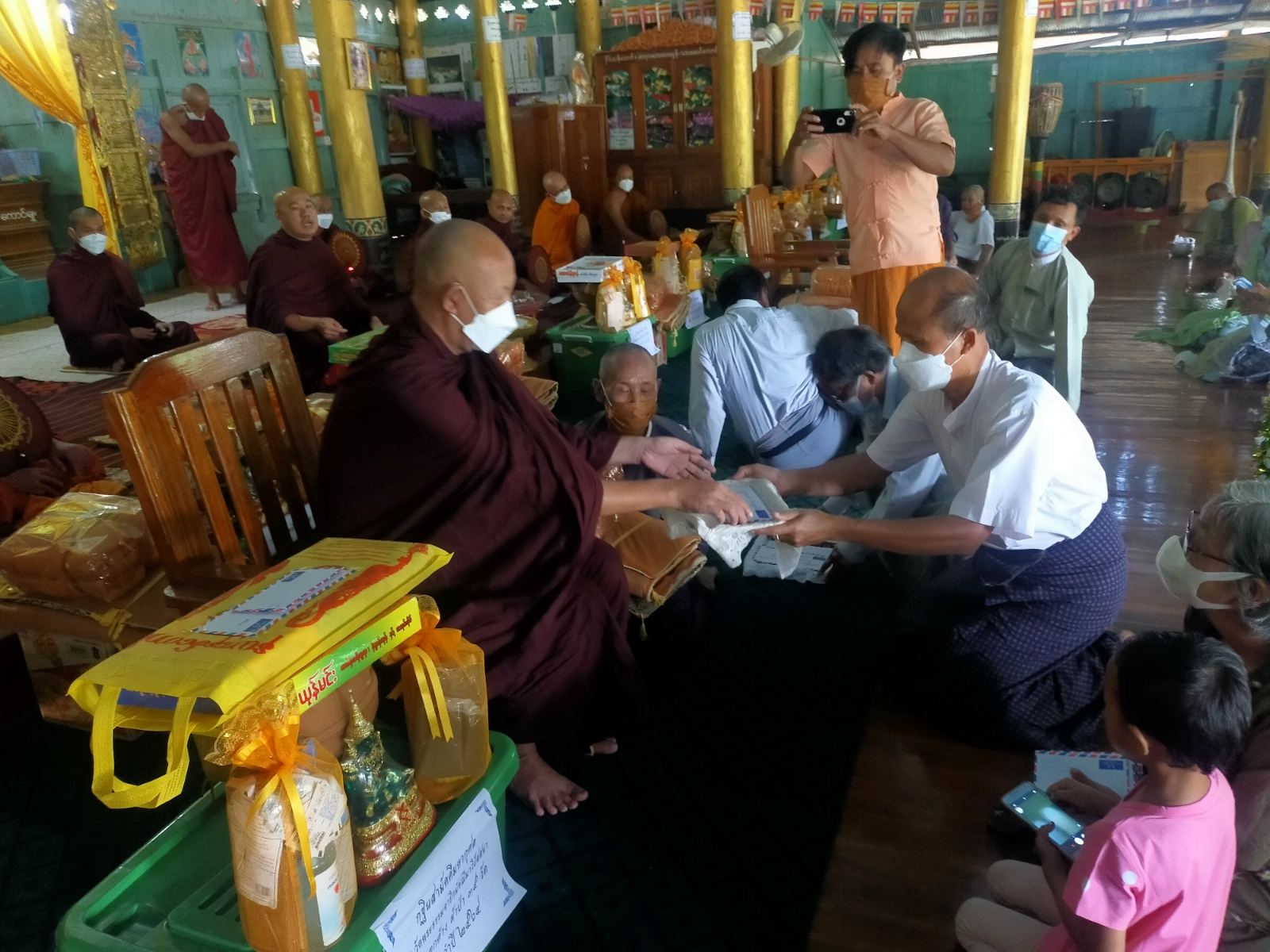 ထို့နောက် မြို့နယ်စီမံအုပ်ချုပ်ရေးအဖွဲ့ဥက္ကဋ္ဌ ဦးအောင်ကျော်သန်းနှင့် ဌာနဆိုင်ရာတာဝန်ရှိသူများ၊ ရပ်ဝေး ရပ်နီးမှ အလှူရှင်ဧည့် ပရိသတ်များက ကျိုက်ထီးရိုးတောရကျောင်းအတွက် ကထိန်လျာသင်္ကန်းနှင့် ကထိန်အရံ သင်္ကန်းများ၊ လှူဖွယ်ဝတ္ထုပစ္စည်းများကို ကျိုက်ထီးရိုး တောရ ကျောင်းဆရာတော်နှင့် ပင့်ဖိတ်ထားသော သံဃာတော် အရှင်သူမြတ်များထံ ဆက်ကပ်လှူဒါန်းပြီးနောက် လှူဒါန်းမှုအစုစုတို့အတွက် ရေစက်သွန်းချ အမျှ ပေးဝေခဲ့ကြောင်း သိရသည်။