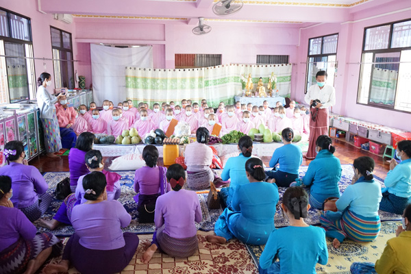 လှူဒါန်းပေးရာတွင် သာသနာ့မဏ္ဏိုင် ပရိယတ္တိစာသင်တိုက်ရှိ သီလရှင်ဆရာလေး(၇၃)ပါး တို့အတွက် ဆန်(၂)အိတ်၊ ဆီ(၁)ပုံး၊ ကြက်သွန်နီ(၁)အိတ်၊ အာလူး(၁)အိတ်၊ ကြက်ဥ(၁)ကဒ်၊ ခေါက်ဆွဲခြောက်(၁)ဖာနှင့် အသီးအနှံမျိုးစုံ ဆက်ကပ်လှူဒါန်းပေးပြီး အလားတူ ခေမာသီရိပရိယတ္တိ စာသင်တိုက်တွင်လည်း သီလရှင် ဆရာလေး (၃၅)ပါးတို့အတွက် ဆွမ်းအခက်ခဲ မရှိစေရေး လှူဖွယ်ပစ္စည်းများအစရှိသော သီးနှံမျိုးစုံ ဆက်ကပ် လှူဒါန်းပေးခဲ့ကြောင်း သိရသည်။