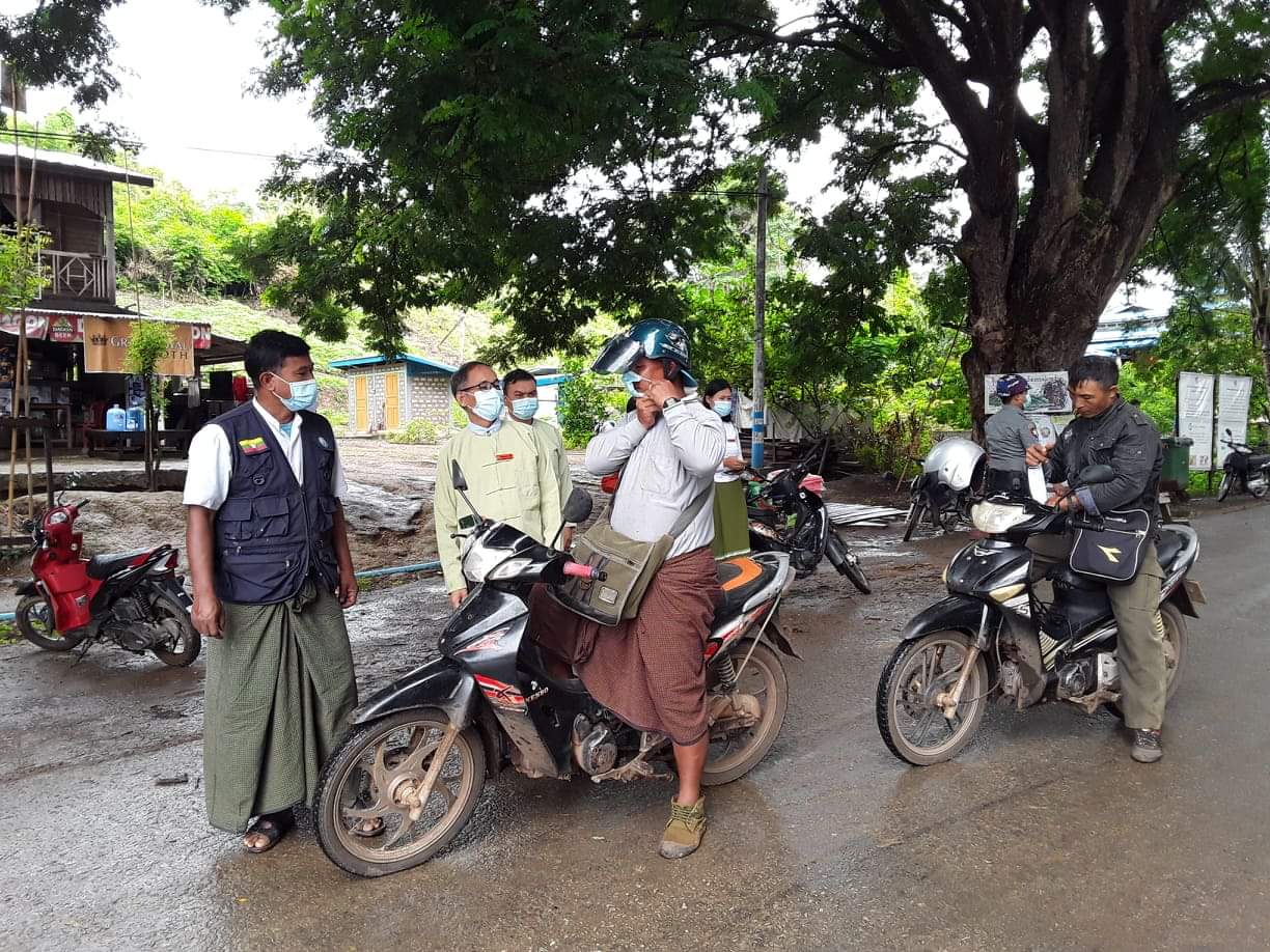 ကယားပြည်နယ်၊ ဘောလခဲခရိုင်၊ ဖားဆောင်းမြို့နယ်တွင် ကိုဗစ်-၁၉ ကူးစက်မှုမဖြစ်ပေါ်စေရေး ကာကွယ်ထိန်းချုပ်ရေးလုပ်ငန်းများကို အရှိန်အဟုန်မပျက် ဆောင်ရွက်လျက်ရှိရာ ယနေ့ နံနက် (၉) နာရီခွဲအချိန်က ဖားဆောင်း မြို့ဝင်/ ထွက် စုပေါင်းဂိတ်တွင် နေအိမ်ပြင်ပသို့ ထွက်ခွာသွားလာနေသော ပြည်သူများအား မဖြစ်မနေ Mask တပ်ဆင်ခြင်း ရှိ/ မရှိ ရှောင်တခင် ကွင်းဆင်း စစ်ဆေးဆောင်ရွက်ခဲ့သည်။