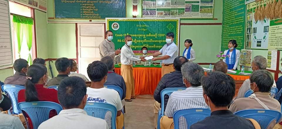 ရှမ်းပြည်နယ်တောင်ပိုင်း၊ လွိုင်လင်ခရိုင်၊ မိုင်းကိုင်မြို့နယ်၌ ကိုဗစ်-၁၉ စီးပွားရေး ကုစားမှု CERP အစီအစဉ်အရ မိုးစပါးမျိုး စေ့ထုတ်တောင်သူများအတွက် ထောက်ပံ့ငွေ ပေးအပ်ခြင်း အခမ်းအနားကို ယမန်နေ့က မြိုနယ်စိုက်ပျိုးရေးဦးစီးဌာန ရုံးခန်းမတွင် ကျင်းပပြုလုပ်ခဲ့သည်။