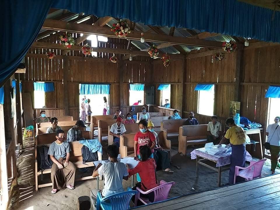 အထက်ရှန်ဂေါင် ကျေးရွာနေပြည်သူလူထုအား ကိုဗစ်-၁၉ ရောဂါကာကွယ်ရေး ညွှန်ကြားချက်များနှင့်အညီ စီမံကိန်း ချေးငွေ များ ထုတ်ချေးပေးနိုင်ရေးအတွက် မြို့နယ် ကျေးလက်ဒေသ ဖွံ့ဖြိုးတိုးတက်ရေးဦးစီးဌာန ဒုတိယ ဦးစီးမှူး ဦးစည်သူ၊ ဒေါ်အားညီဟဲ့၊ အကြီးတန်းစာရေး ဒေါ်ရယ်ဒမ်းဝမ်ဇီရမ်နှင့် အငယ်တန်းစာရေး ဒေါ်ထွယ်ရာတို့၏ ကွင်းဆင်း ကြီးကြပ်မှုဖြင့် စနစ်တကျလက်ဆေးစေခြင်း၊ Mask များ တပ်ဆင်စေခြင်း၊ တစ်ဦးနှင့်တစ်ဦး ခြောက်ပေအကွာတွင် နေရာယူစေခြင်းနှင့် ကိုယ်အပူချိန် တိုင်းတာ ပေးခြင်းများ ဆောင်ရွက်ပြီးမှ ချေးငွေများကို စနစ်တကျထုတ်ချေးပေးခဲ့ခြင်း ဖြစ်သည်။