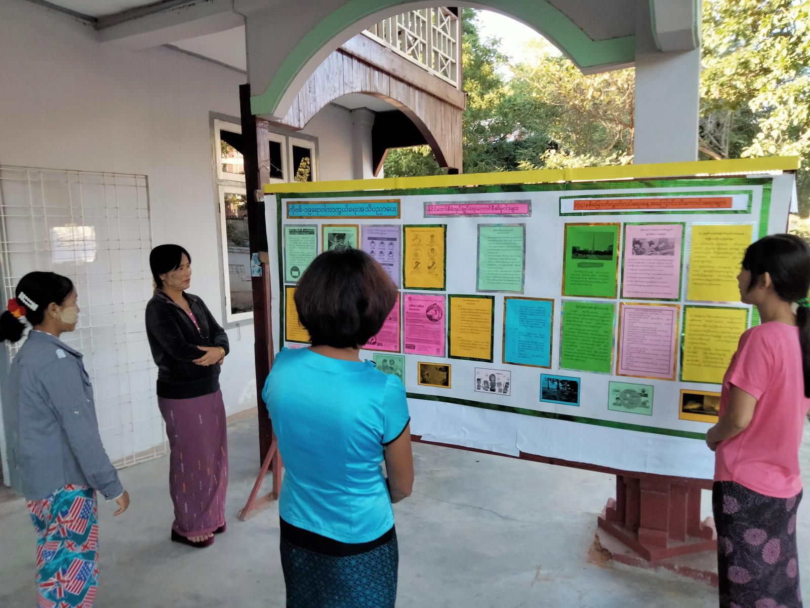 အဆိုပါနံရံကပ်ပြဘုတ်တွင် မြန်မာ့လွတ်လပ်ရေး ကာလတစ်လျှောက် ချုပ်ဆိုခဲ့သော စာချုပ်များ၊ ၂၀၂၂ခုနှစ် (၇၄)နှစ်မြောက် လွတ်လပ်ရေးနေ့ အမျိုးသား ဦးတည်ချက်(၅)ချက်၊ ပြည်သူအားလုံး သမိုင်းပေးတာဝန်၊ လွတ်လပ်ရေး ကြိုးပမ်းမှု သမိုင်းအကျဉ်း၊ နိုင်ငံတော်စီမံ အုပ်ချုပ်ရေး ကောင်စီရှေ့ လုပ်ငန်းစဉ်(၅)ရပ်၊ နိုင်ငံတော်စီမံအုပ်ချုပ်ရေးကောင်စီ ဦးတည်ချက် (၉)ရပ်နှင့် ကိုဗစ်-၁၉ရောဂါ ကာကွယ်ရေး အသိပညာပေး စာစောင်နံရံကပ် မှတ်တမ်းဓာတ်ပုံများကို ပြည်သူများ စိတ်ဝင်စားစွာကြည့်ရှုရန် ပြသလျက်ရှိကြောင်း သိရသည်။