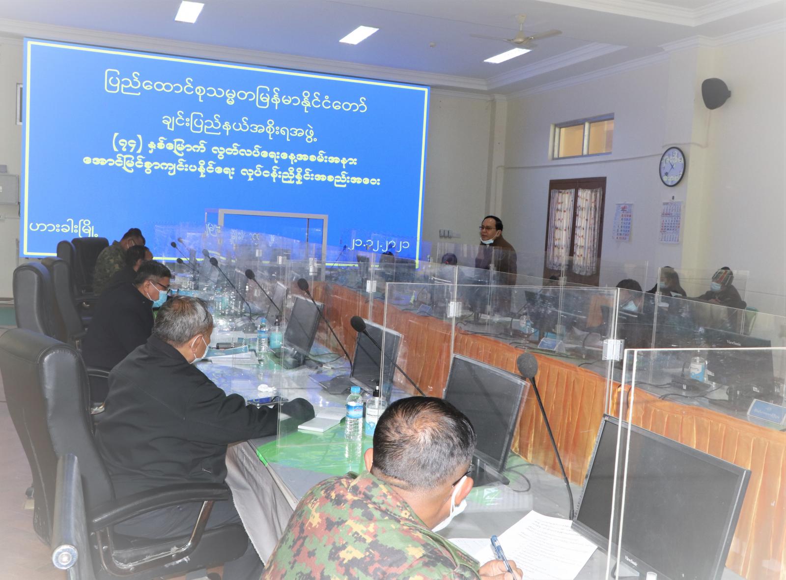 ထို့နောက် ဆပ်ကော်မတီအလိုက် တင်ပြချက်များအပေါ် လုံခြုံရေးနှင့် နယ်စပ်ရေးရာဝန်ကြီး ဗိုလ်မှူးကြီး ဟန်ဝင်းအောင်၊ သယံဇာတရေးရာဝန်ကြီး ဦးကျော်ငြိမ်း၊ တိုင်းရင်းသားရေးရာဝန်ကြီး ဦးစိန်ထွန်းလှ၊ ပြည်နယ်အစိုးရ အဖွဲ့ အတွင်းရေးမှူး ဦးမောင်မောင်ဆန်းနှင့် ဟားခါးတပ်နယ်မှ ဗိုလ်မှူးကြီး စောထွန်းတို့က လုံခြုံရေးဆိုင်ရာကိစ္စရပ် များ၊ တိုင်းရင်းသားဝတ်စုံများ ကြိုတင်စီစဉ်ထားရှိမှု၊ ဆပ်ကော်မတီအလိုက် သုံးစွဲမည့်ရန်ပုံငွေများထုတ်ပေးရန် ဆောင် ရွက်ထားရှိမှု၊ ဆယ်တင်ပစ္စည်းများ စနစ်တကျထိန်းသိမ်းထားရှိရေး၊ အခမ်းအနား သတင်း မှတ်တမ်းများ စနစ်တကျ ရိုက်ကူးရေး ကိစ္စများနှင့်ပတ်သက်၍ အကြံပြုဆွေးနွေးကြပြီး ပြည်နယ်ဝန်ကြီးချုပ်နှင့် အနောက်မြောက်တိုင်းစစ်ဌာနချုပ် ဒုတိယတိုင်းမှူး ဗိုလ်မှူးချုပ် မျိုးထွဋ်လှိုင်တို့က ပေါင်းစပ်ညှိနှိုင်းဆောင်ရွက်ပေးခဲ့ကြောင်း သိရသည်။