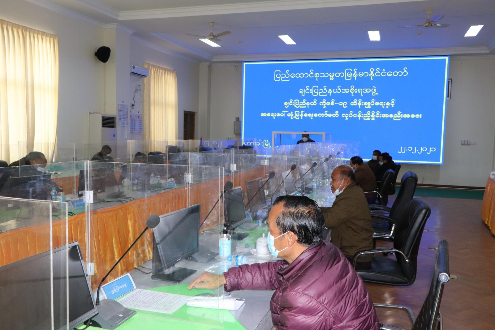 ချင်းပြည်နယ် ကိုဗစ်−၁၉ ထိန်းချုပ်ရေးနှင့်အရေးပေါ်တုံ့ပြန်ရေးကော်မတီ လုပ်ငန်းညှိနှိုင်းအစည်း အဝေးကို ယနေ့နံနက် (၁၀)နာရီက ပြည်နယ်အစိုးရးအဖွဲ့ရုံးခန်းမ၌ ကျင်းပရာ ပြည်နယ် ဝန်ကြီးချုပ် ဦးငွန်ဆန်းအောင် တက်ရောက် အမှာစကားပြောကြားသည်။