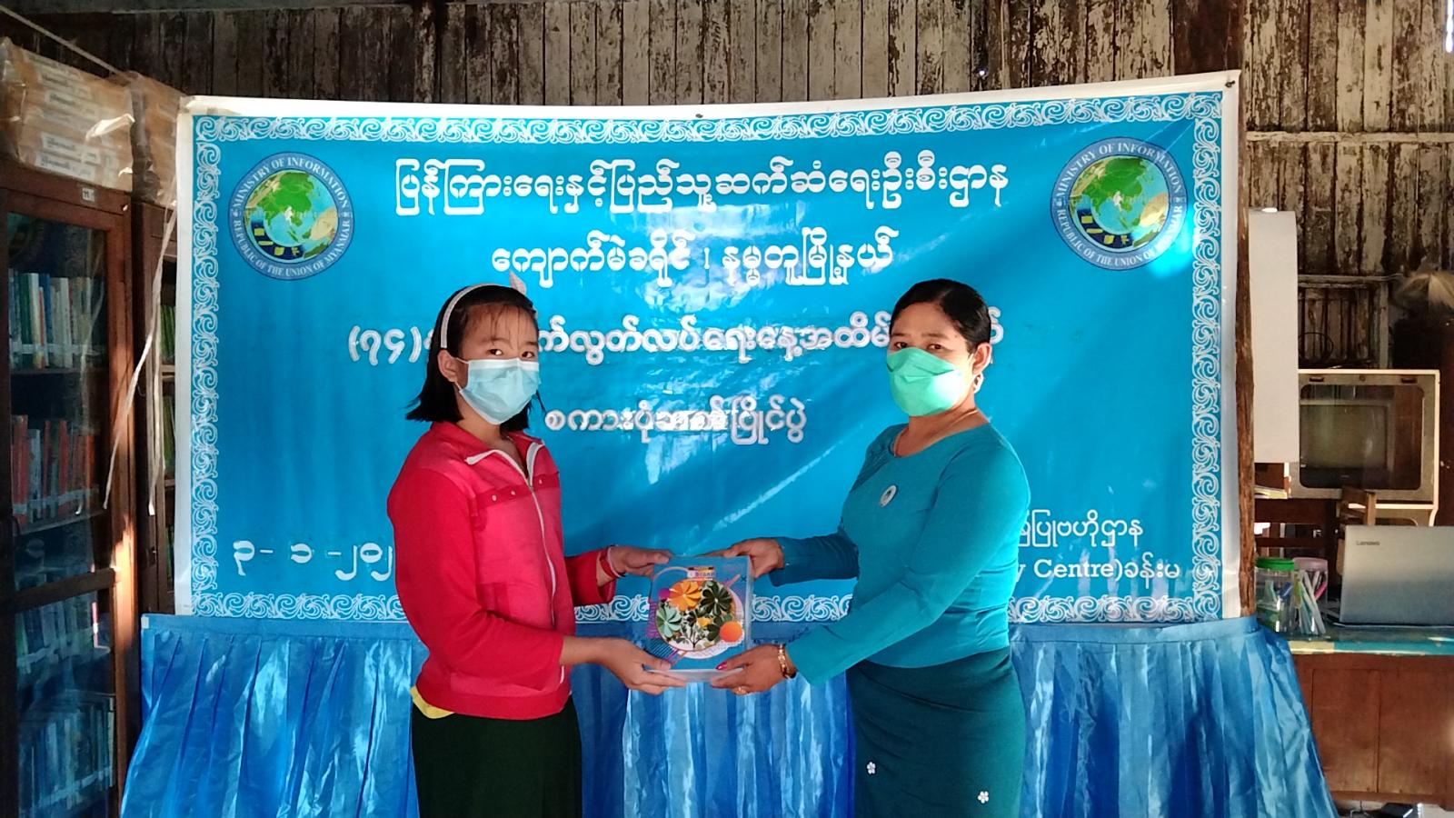 ထို့နောက် ပြိုင်ပွဲအားဆက်လက်ကျင်းပရာ အမှတ် (၃) အခြေခံပညာမူလတန်းလွန် ကျောင်းမှ အလယ်တန်းအဆင့် ကျောင်းသား /ကျောင်းသူ (၁၁)ဦး ပါဝင်ယှဉ်ပြိုင်ခဲ့ပြီး ပြိုင်ပွဲတွင် ထူးချွန်ဆုရရှိသူ များအား မြို့နယ်ဦးစီးမှူး ဒေါ်ခိုင်ဇာထွန်းက ထူးချွန်ဆုများ ပေးအပ်ချီးမြှင့်ကာ ပြိုင်ပွဲဝင်များအားလုံးကို အမှတ်တရလက်ဆောင်ပစ္စည်းများ ပေးအပ်ချီးမြှင့်ခဲ့ကြောင်း သိရသည်။
