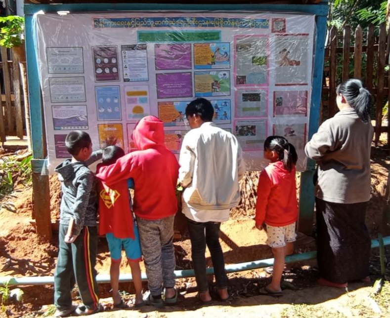 ထိုသို့ မြေစိုက်နံရံကပ်ဘုတ်ပြသ ဆောင်ရွက်ခြင်းကို ပြန်ကြားရေးနှင့်ပြည်သူ့ဆက်ဆံရေး ဦးစီးဌာနမှ ဝန်ထမ်းများက အချိန်ကာလနှင့် သင့်လျော်သော အသိပညာပေး အချက်အလက်များကို စုစည်း၍ လစဉ်လဲလှယ် ပြသလျက်ရှိရာ ဒေသခံပြည်သူများနှင့် ကျောင်းသား/ကျောင်းသူများက စိတ်ဝင်စားစွာ ကြည့်ရှုလျက်ရှိကြောင်း သိရသည်။