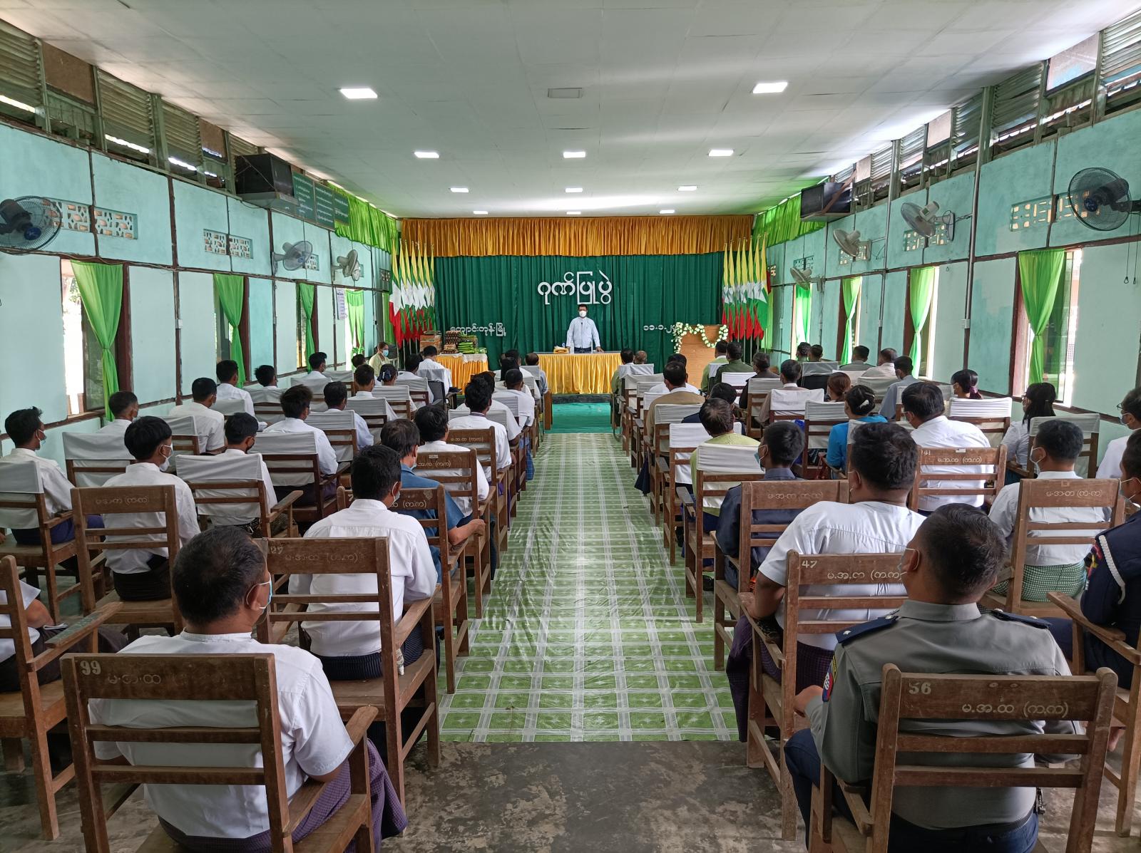 ဧရာဝတီတိုင်းဒေသကြီးအစိုးရအဖွဲ့ဝန်ကြီးချုပ် ဦးတင်မောင်ဝင်း၊အနောက်တောင်တိုင်းစစ်ဌာနချုပ် တိုင်းမှုးဗိုလ်ချုပ် အောင်အောင် တို့အဖွဲ့သည် ပုသိမ်ခရိုင်၊ ကျောင်းကုန်းမြို့နယ်၊ အထွေထွေအုပ် ချုပ်ရေးဦးစီးဌာနရုံး အေးချမ်းသာယာ ခန်းမ၌ ယမန်နေ့မွန်းလွဲ ၂ နာရီအချိန်ကျင်းပပြုလုပ်သော အကြမ်းဖက်သမားများကို ဝိုင်းဝန်းဖမ်းဆီးပေးသည့် တာဝန်သိပြည်သူ များအား ဂုဏ်ပြုချီးမြှင့်ပွဲ အခမ်းအနားသို့ တက်ရောက် အားပေးခဲ့ကြသည်။