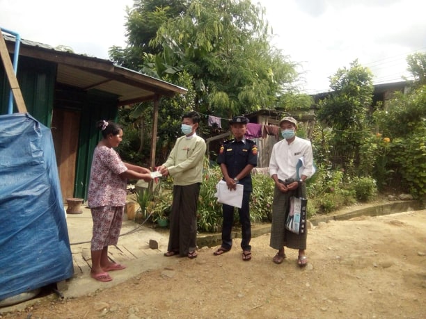 ခိုင်ကမ်းမြို့တွင် ရပ်ကွက်ကြီးလေးခုရှိရာ အမှတ် ၁ ရပ်ကွက်တွင် အိမ်ထောင်စု (၁၇၇)စု၊ အမှတ် ၂ ရပ်ကွက်တွင် ( ၅၇ )စု၊ အမှတ် ၃ ရပ်အကွက်တွင်(၁၃၂)စုနှင့် အမှတ် ၄ ရပ်ကွက်တွင်(၇၁)စု စုစုပေါင်းအိမ်ထောင်စု ၄၃၇ စု အတွက် တစ်အိမ်ထောင်လျှင် ကျပ်နှစ်သောင်းစီကို ခိုင်ကမ်းမြို့ရပ်ကွက် အုပ်ချုပ်ရေးမှူးများ ဦးဆောင်၍ ၂၂.၈.၂၀၂၀ မှစတင်ကာ ၂၅.၈.၂၀၂၀ ရက်နေ့အထိ ပြည်သူများလက်ဝယ်အရောက် ပေးအပ်ခဲ့ကြောင်းသိရသည်။