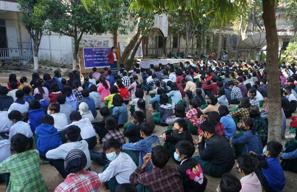 အသိပညာပေးဟောပြောပွဲတွင် ကျောက်ဆည်ခရိုင် ပြန်ကြားရေးနှင့်ပြည်သူ့ဆက်ဆံရေးဦးစီးဌာနမှ လက်ထောက်ညွှန်ကြားရေးမှူး ဒေါ်တင်တင်ထွေးက ကျောင်းသား/ကျောင်းသူများအနေဖြင့် စာအုပ်၊ စာပေများဖတ်ရှုခြင်းအားဖြင့် အသိပညာ ဗဟုသုတများကြွယ်ဝစေပြီး စဉ်းစားတွေးခေါ်မှု အသိဉာဏ်များ ပိုမိုရင့်သန်လာမှာဖြစ်ကြောင်း၊ ကျောင်းစာအပြင် ပြင်ပဗဟုသုတများ ရရှိစေရန်အတွက် စာဖတ်ရှိန်မြင့်မားရေး အသိပညာ ပေးဟောပြောပွဲ၊ နံရံကပ်စာစောင်နှင့် စာအုပ်စာစောင်ပြပွဲများ ပြုလုပ်ရခြင်းဖြစ်ကြောင်းနှင့် ခရိုင်ဦးစီးအရာရှိ ဒေါ်ခင်နှင်းရီက စာအုပ်၊ စာပေများဖတ်လေ့လာခြင်းကြောင့် ဘဝတွင်အောင်မြင်ထူချွန်သူများအကြောင်း အသိပညာပေး ဟောပြောခဲ့ပြီး သဘာဝဘေးအန္တရာယ်ကာကွယ်ရေး အသိပညာပေး လက်ကမ်း စာစောင်များ ဖြန့်ဝေခဲ့ကြောင်း သိရှိရသည်။