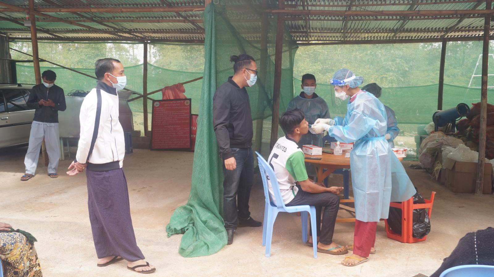 ကယားပြည်နယ်မှ ခေတ္တခိုလုံရောက်ရှိလာသည့် တိုက်ပွဲရှောင်ပြည်သူများ ကိုဗစ်-၁၉ ရောဂါ အစုလိုက် ကူးစက်မှုမဖြစ်ပေါ်စေရေးအတွက် ရှမ်းပြည်နယ်တောင်ပိုင်း၊ ပအိုဝ်းကိုယ်ပိုင်အုပ်ချုပ်ခွင့်ရဒေသ၊ နောင်တရားမြို့ တိုက်ပွဲရှောင်ခေတ္တလက်ခံရေးဌာနဖြစ်သည့် ရတနာရန်နိုင် ဓမ္မာရုံ၊ ရွှေဘုန်းပွင့်ပညာဒါနကျောင်း၊ ဗုဒ္ဓဓမ္မတောင်၌ တိုက်ပွဲရှောင်ပြည်သူများကို ကိုဗစ်-၁၉ ရောဂါပိုးရှိမရှိ ယနေ့နံနက်ပိုင်းတွင် အခမဲ့စစ်ဆေးသည်။