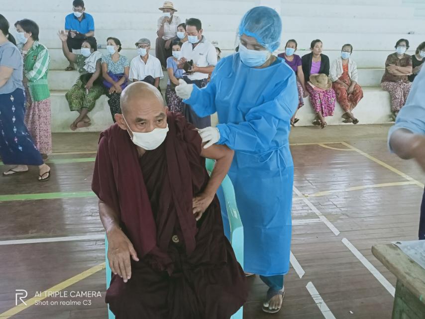 ကိုဗစ်-၁၉ ရောဂါ ကာကွယ်ဆေး ထိုးနှံပေးရာသို့ မြို့နယ်စီမံအုပ်ချုပ်ရေးအဖွဲ့ဥက္ကဋ္ဌ ဦးဝင်းမြင့်နှင့် အဖွဲ့က လာရောက် ကြည့်ရှု အားပေးစကား ပြောကြားခဲ့ပြီးနောက် မြို့နယ်အထွေထွေ အုပ်ချုပ်ရေး ဦးစီးဌာနမှ တာဝန်ရှိသူများ၊ ရပ်ကွက် အုပ်ချုပ်ရေးမှူးများ၊ ရပ်/ကျေး စာရေးများ၊ မီးသတ်နှင့် စေတနာရှင်လူငယ်အဖွဲ့တို့မှ ဝိုင်းဝန်းကူညီပေးကြကြောင်း သိရသည်။