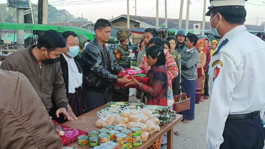 ထိုသို့လှူဒါန်းပေးအပ်ခြင်းကို ကယားပြည်နယ် အစိုးရအဖွဲ့ အတွင်းရေးမှူး ဦးအံ့မော်၊ ဒေသကွပ်ကဲမှု စစ်ဌာနချုပ်(လွိုင်ကော်)မှ ဒုတိယဒေသ ကွပ်ကဲရေးမှူး ဗိုလ်မှူးကြီးစိုးဝင်းထွန်း၊ ခရိုင်စီမံအုပ်ချုပ်ရေး အဖွဲ့ ဥက္ကဋ္ဌ ဦးဝင်းဇော်နိုင်နှင့် အဖွဲ့ဝင်များဖြစ်ကြသော ဗိုလ်မှူးမိုးဝင်းထက်၊ ဒုတိယရဲမှူးကြီးသုခ တို့မှ လာရောက်ကြည့်ရှုအားပေးခဲ့ကြပြီး မြို့နယ်စီမံအုပ်ချုပ်ရေးအဖွဲ့ ဥက္ကဋ္ဌ ဦးမျိုးကျော်နှင့် အဖွဲ့ဝင် ဗိုလ်မှူးမိုးဝင်းထက်၊ ရဲမှူးမြသန်းထိုက်တို့မှ ဦးဆောင်၍ အိမ်ထောင်စု(၇၀၀)စုအား အခြေခံ စားသောက်ကုန်နှင့် ထောက်ပံ့ပစ္စည်းများ ပေးအပ်လှူဒါန်းခဲ့ကြောင်း သိရှိရသည်။