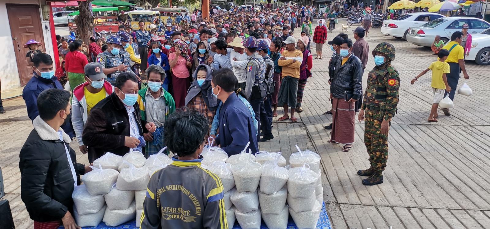 ထိုသို့ဆောင်ရွက်ရာတွင် ခရိုင်စီမံအုပ်ချုပ်ရေးအဖွဲ့ ဥက္ကဋ္ဌ ဦးဝင်းဇော်နိုင်၊ မြို့နယ်စီမံအုပ်ချုပ်ရေး အဖွဲ့ဥက္ကဌဦးမျိုးကျော်နှင့် အဖွဲ့ဝင်များဖြစ်ကြသော ဗိုလ်မှူးမိုးဝင်းထက်၊ မြို့နယ်စည်ပင်သာယာရေး၊ မြို့နယ်လဝက၊ မြို့နယ်ယာယီရဲတပ်ဖွဲ့မှူးတို့မှ ပြည်သူတစ်ဦးလျှင် ဆန်နှစ်ပြည်ဖြင့် ပြည်သူ(၁၆၀၀)ဦးအား လှူဒါန်းပေးအပ်ခဲ့ကြောင်း သိရသည်။