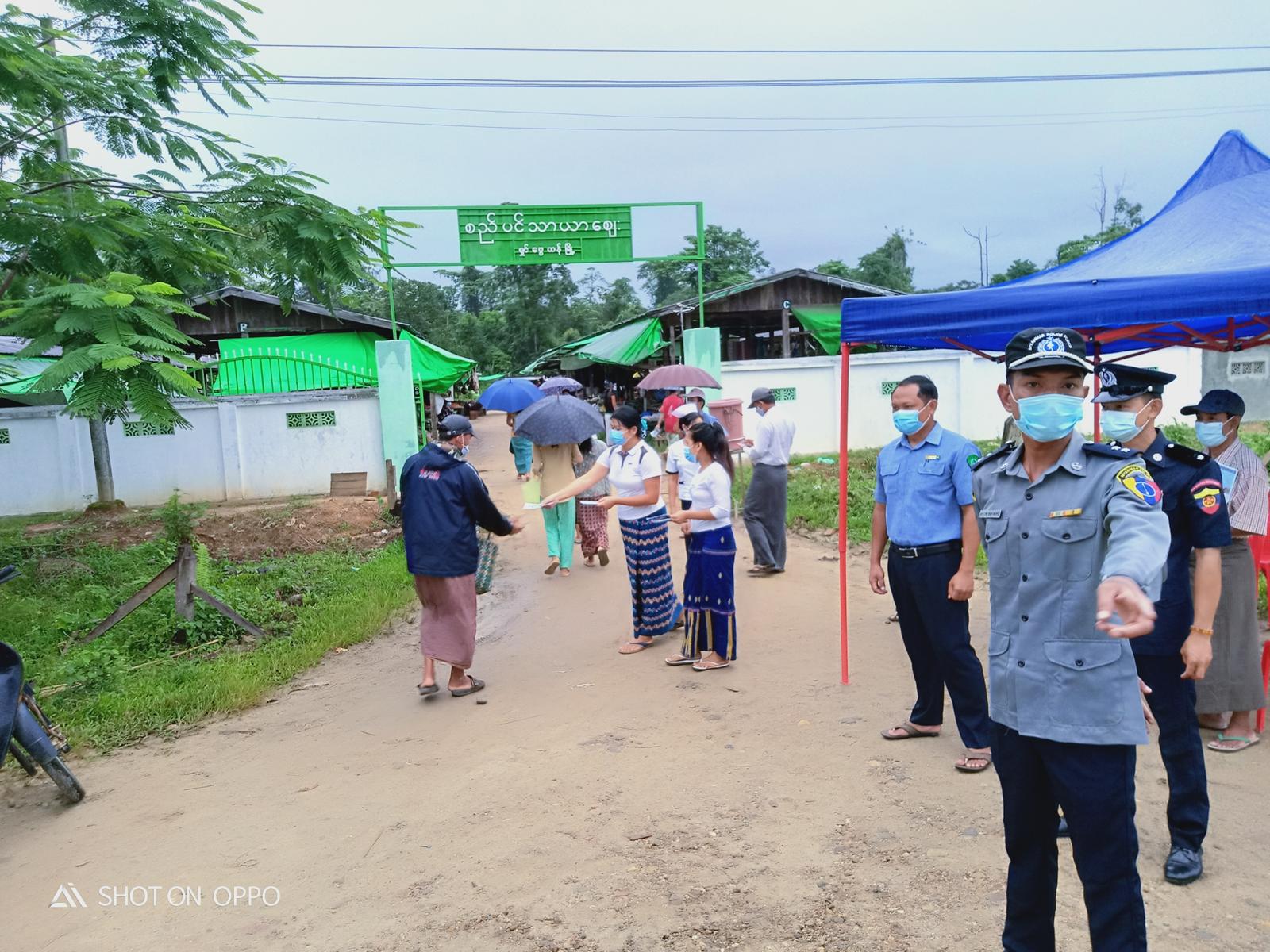 ထိုသို့ဆောင်ရွက်ခဲ့ရာတွင် မြို့အုပ်ချုပ်ရေးမှူး ဦးဇော်အောင်နှင့် ဌာနဆိုင်ရာဝန်ထမ်းများ၊ နယ်မြေခံ ရဲစခန်းမှူး ရဲအုပ်ကျော်သူထက်နှင့်ဝန်ထမ်းများ၊ ပြည်သူ့ဆေးရုံ တာဝန်ခံဆရာဝန် ဒေါက်တာအောင်ဂျာ၊ ကျေးလက် ကျန်းမာရေး ဌာနခွဲမှ ဝန်ထမ်းများ၊ မီးသတ်တပ်ဖွဲ့ ဝန်ထမ်းများက ပူးပေါင်း၍ ပြည်သူများအား နေအိမ်အပြင် ထွက်လျှင် နှာခေါင်းစည်း (mark)များ တပ်ဆင်ကြရန်နှင့် ကိုဗစ်-၁၉ရောဂါ ကြိုတင်ကာကွယ်ထိန်းချုပ်ရေးအတွက် အသိပညာပေး လုပ်ငန်းများ ဆောင်ရွက် ခဲ့ကြကြောင်း သိရသည်။
