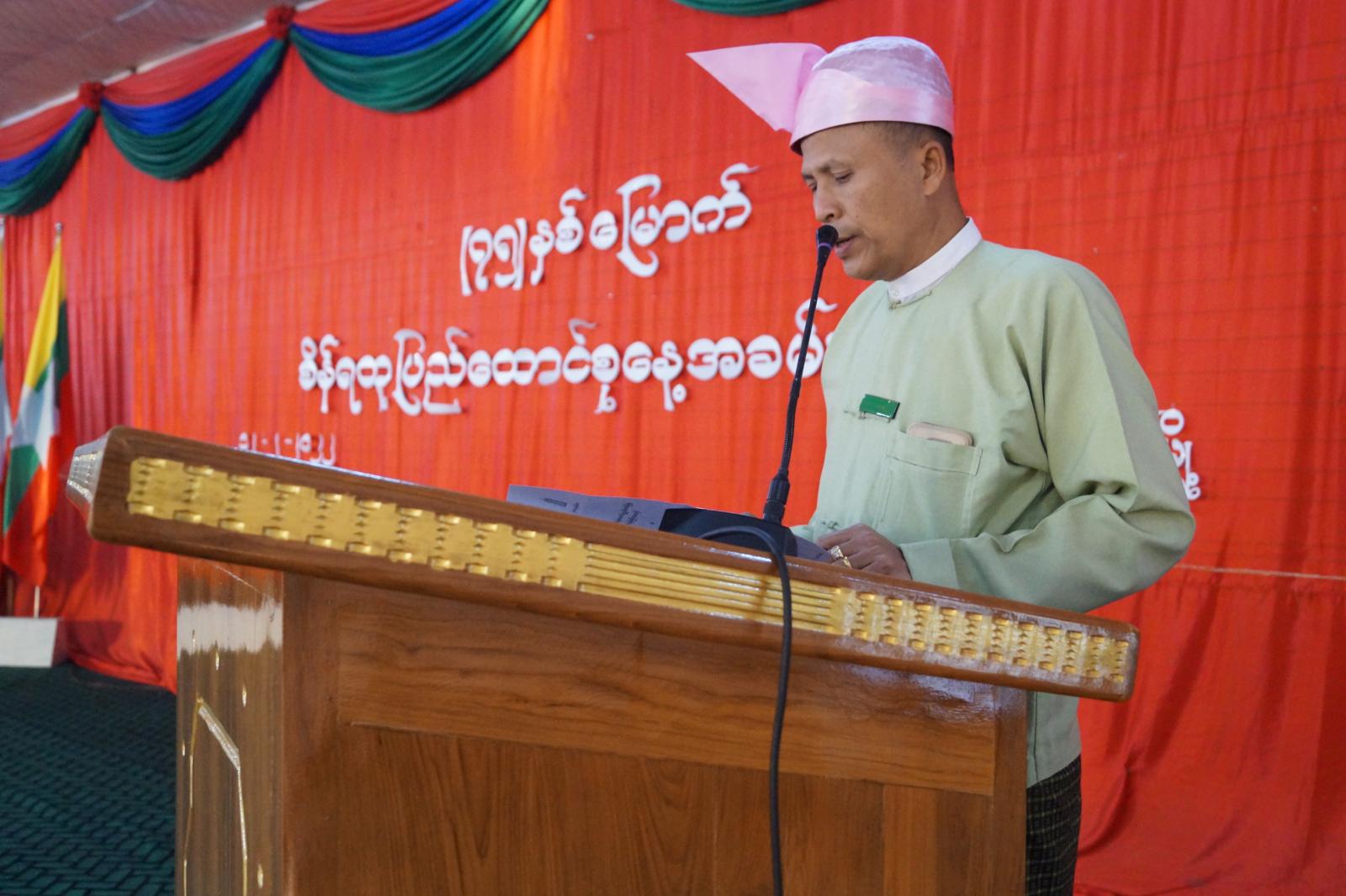 အခမ်းအနားတွင် မြန်မာနိုင်ငံရဲတပ်ဖွဲ့က ဦးဆောင်၍ မြို့နယ်စီမံအုပ်ချုပ်ရေးအဖွဲ့ဥက္ကဋ္ဌ ဦးအောင်ကျော်သန်းနှင့် ဌာနဆိုင်ရာများ၊ တက်ရောက်လာကြသူများက မြန်မာနိုင်ငံတော်အလံနှင့် ကျဆုံးလေပြီးသော အာဇာနည်ခေါင်းဆောင်ကြီးများအား အလေးပြုကြပြီးနောက် ပြည်ထောင်စုသမ္မတမြန်မာနိုင်ငံတော်၊ နိုင်ငံတော်စီမံအုပ်ချုပ်ရေးကောင်စီဥက္ကဋ္ဌ၊ နိုင်ငံတော်ဝန်ကြီးချုပ် ဗိုလ်ချုပ်မှူးကြီးမင်းအောင်လှိုင်ထံမှ ပေးပို့လာသော (၇၅) နှစ်မြောက် စိန်ရတုပြည်ထောင်စုနေ့ သဝဏ်လွှာကို မြို့နယ်စီမံအုပ်ချုပ်ရေးအဖွဲ့ဥက္ကဋ္ဌ ဦးအောင်ကျော်သန်းက ဖတ်ကြားခဲ့ကြောင်း သိရ သည်။