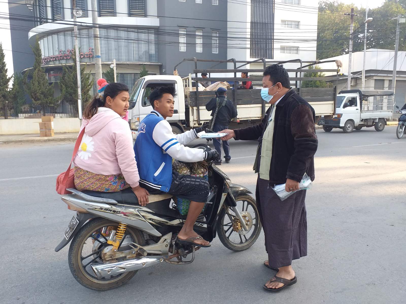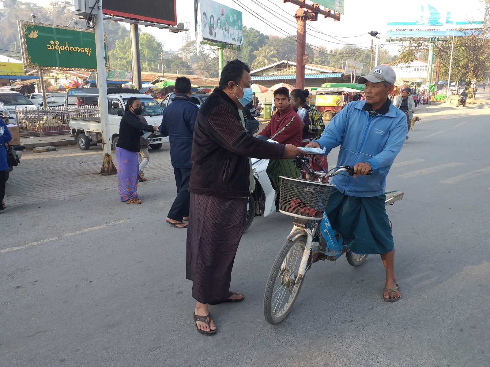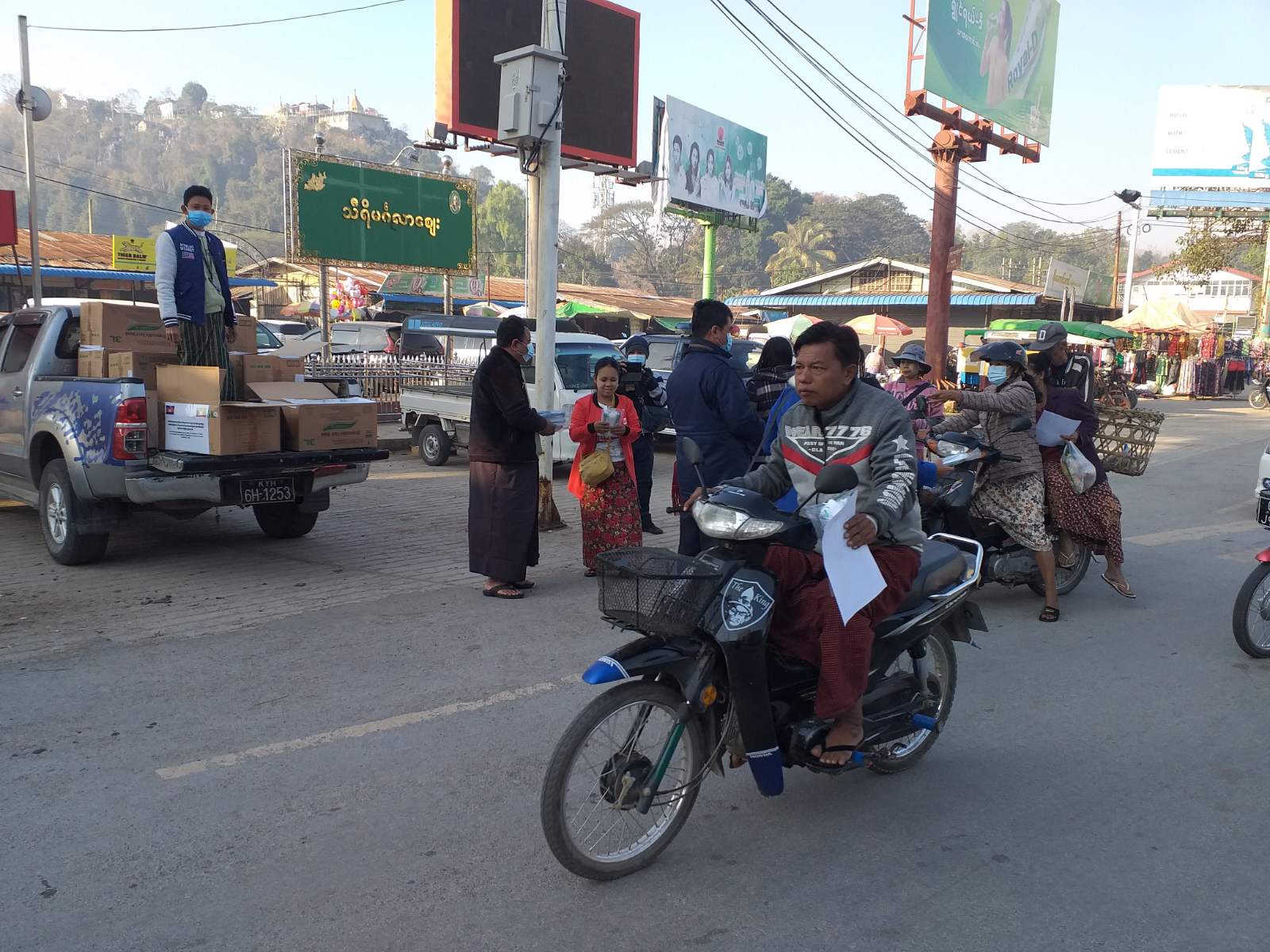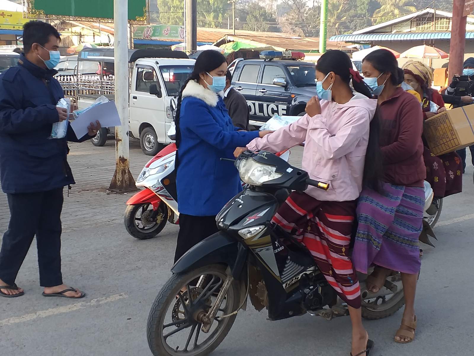 ထိုသို့ဆောင်ရွက်ရာတွင် ပြည်နယ်ကုသရေးနှင့် ကျန်းမာရေးဦးစီးဌာန၊ ပြည်နယ်ဦးစီးမှူး ဒေါက်တာဌေးလွင်၊ မြို့နယ် ကိုဗစ်-၁၉ရောဂါ ကာကွယ်ထိန်းချုပ်၊ ကုသ ရေး၊ လုပ်ငန်းကော်မတီ ဥက္ကဋ္ဌ ဦးမျိုးကျော်၊ မြို့နယ်ရဲတပ်ဖွဲ့မှူးနှင့် မြို့နယ်အဆင့် ဌာနဆိုင်ရာဝန်ထမ်းများက ကိုဗစ်-၁၉ ရောဂါကြိုတင်ကာကွယ်ရေး အတွက် နှာခေါင်းစည်းကို မဖြစ်မနေ တပ်ဆင်သွားလာကြရန်၊ ဗီဇပြောင်း အိုမီခရွန် ကြိုတင်ကာကွယ်ရန်အတွက် လိုက်နာရမည့် အချက်များ၊ လက်ကို HandGel (သို့မဟုတ်)ဆပ်ပြာဖြင့် မကြာခဏဆေးကြောရန်နှင့် လူစုလူဝေးနေရာများ သွားလာခြင်းမှ ရှောင်ကြရန် စသည့်အချက်များကို အသိပညာပေးခြင်း၊ အိုမီခရွန် ရောဂါလက္ခဏာ အသိပညာပေးစာစောင်များနှင့် နှာခေါင်းစည်း(Mask) တစ်ထုပ်လျှင် ၂၀ခုပါ အထုပ်ရေပေါင်း ၁၅၃၀ ထုပ် ဖြန့်ဝေခဲ့ကြောင်း သိရသည်။