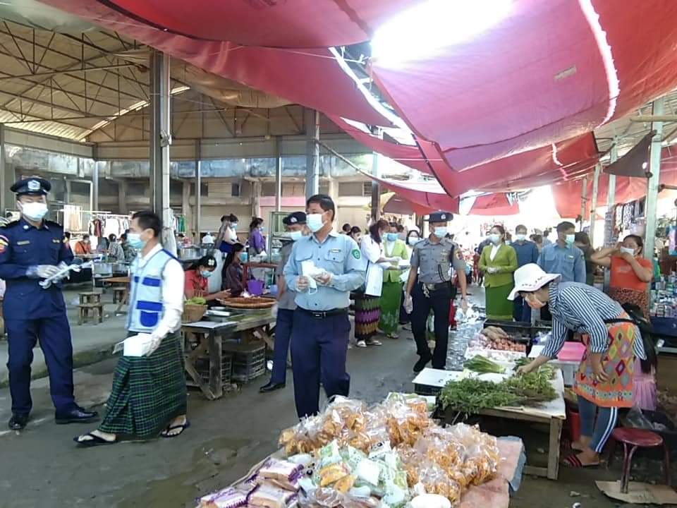 ထိုသို့ ဆောင်ရွက်ရာတွင် ကျန်းမာရေးနှင့် အားကစားဝန်ကြီးဌာန လမ်းညွှန်ချက်များနှင့်အညီ စျေးအတွင်းရောင်းချစေခြင်း စျေးသည်လူများပြားသည့်နေရာဖြစ်သည်နှင့်အညီ လူတစ်ဦး တစ်ယောက်ခြင်းစီကစ၍ ရောဂါကာကွယ်ရေးကို စနစ်တကျ လိုက်နာဆောင်ရွက်ရန် စျေးသူစျေးသားများအား အသိပညာပေး ဆွေးနွေးခဲ့ကြပြီး စျေးသူ/စျေးသားများနှင့် စျေးဝယ်လာသူများအား Masks များ အခမဲ့ဖြန့်ဝေခြင်းကို အထွေထွေအုပ်ချုပ်ရေးဦးစီးဌာန၊ ကျန်းမာရေး၊ မီးသတ်ဦးစီးဌာနနှင့် စည်ပင်ဝန်ထမ်းများက ကွင်းဆင်းဆောင်ရွက်ခဲ့ကြကြောင်း သိရသည်။