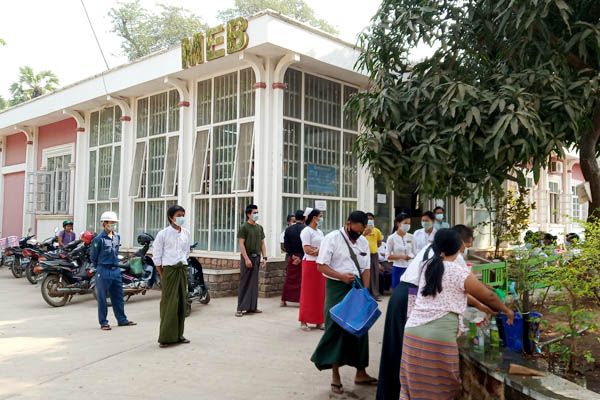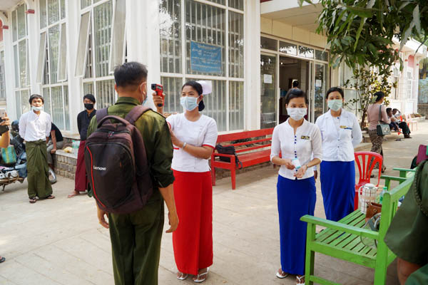 မန္တလေးတိုင်းဒေသကြီး၊ ကျောက်ပန်းတောင်းမြို့နယ် မြန်မာ့စီးပွားရေးဘဏ်တွင် လစာငွေ လာရောက်ထုတ်ယူ ကြသည့် နိုင်ငံဝန်ထမ်းများနှင့် သီးခြားငွေသွင်း/ငွေထုတ်လာရောက်သူများအား၊ မြို့နယ်လုပ်ငန်းကော်မတီမှ လူငယ်များနှင့် ကျန်းမာရေးဌာနဝန်ထမ်းများက ကိုယ်အပူချိန် တိုင်းတာစစ်ဆေးခြင်းနှင့် ပညာပေးလက်ကမ်း စာစောင်ဖြန့်ဝေခြင်းများကို ယနေ့ နံနက်(၉)နာရီမှ စတင်ဆောင်ရွက်ခဲ့ကြသည်။