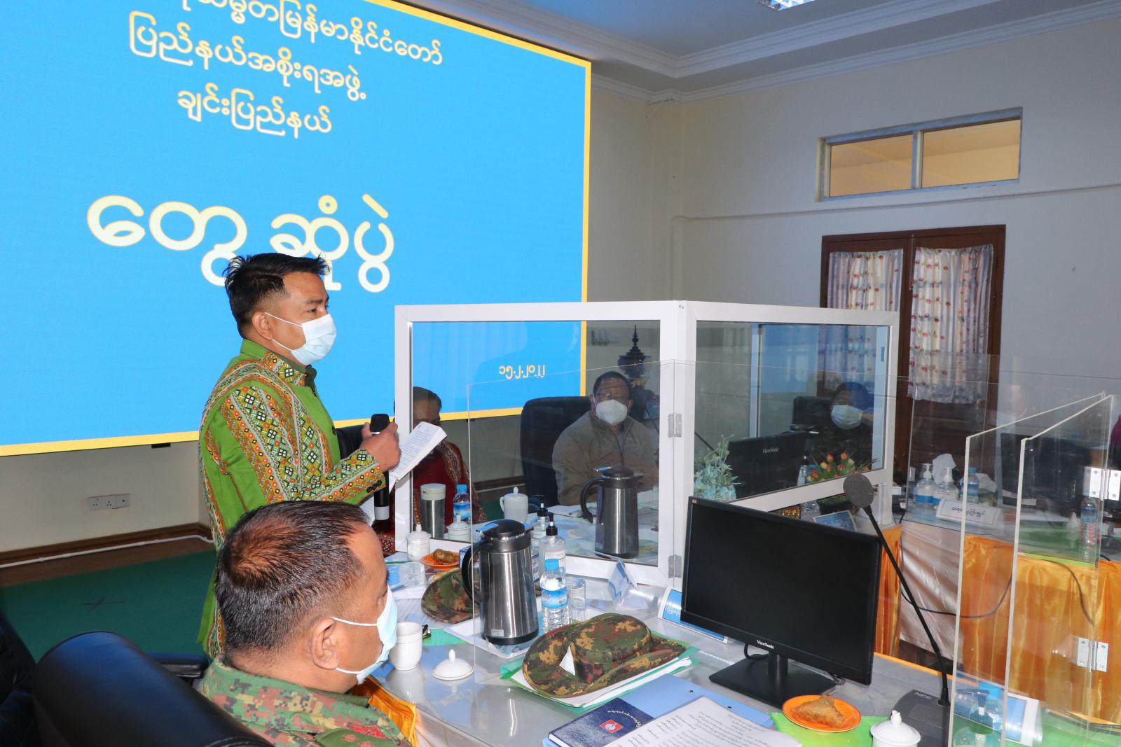 ယင်းနောက် ချင်းပြည်နယ်အစိုးရအဖွဲ့ဝင် သယံဇာတရေးရာဝန်ကြီး ဦးကျော်ငြိမ်းက ဒေသအခြေအနေများကို ရှင်းလင်းတင်ပြခဲ့ပြီး တက်ရောက်လာကြသည့် ပြည်နယ်အဆင့် ဌာနဆိုင်ရာတာဝန်ရှိ သူများက တစ်ဦးချင်းမိတ်ဆက်ခြင်းနှင့် လုပ်ငန်းဆောင်ရွက်မှုအခြေအနေများကို ရှင်းလင်းတင်ပြ ခဲ့ကြောင်း သိရသည်။