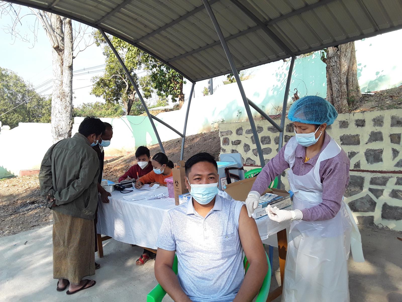 ကိုဗစ်-၁၉ ရောဂါကာကွယ်ဆေး Booster Dose ထိုးနှံခြင်းလုပ်ငန်းကို မြို့နယ်ကိုဗစ်-၁၉ ရောဂါ ကာကွယ်ထိန်းချုပ်ရေးနှင့် အရေးပေါ်တုံ့ပြန်ရေးကော်မတီဥက္ကဋ္ဌ ဦးသက်မြင့်ဦး၏ အနီးကပ်ကြီးကြပ်မှုဖြင့် ကော်မတီအဖွဲ့ဝင်များ၊ စေတနာ့ဝန်ထမ်း (Volunteer) အဖွဲ့ဝင်များ၏ ပူးပေါင်းကူညီမှုဖြင့် ကျန်းမာရေးဝန်ထမ်းများက ထိုးနှံပေးလျက်ရှိကြောင်းသိရှိရပြီး ယနေ့နံနက်ပိုင်းက နိုင်ငံဝန်ထမ်း များနှင့် သက်ကြီးဘိုးဘွားများ စုစုပေါင်း ၆၀ ဦး ကာကွယ်ဆေး လာရောက်ထိုးနှံခဲ့ကြကြောင်း သိရသည်။