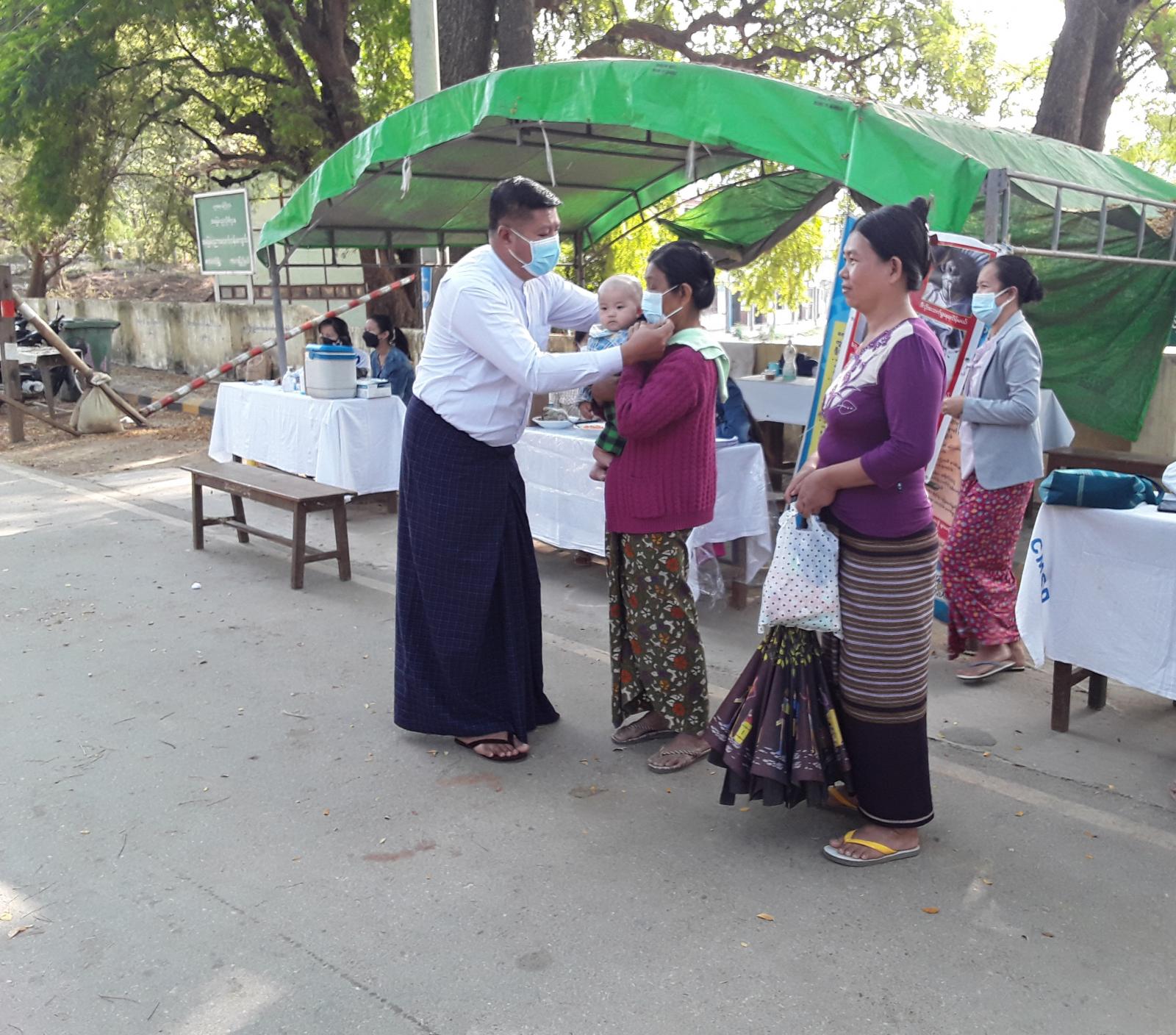 ထိုသို့( Mask Campain )ပြုလုပ်ရာတွင် ခရီးသွားပြည်သူများအား ကျန်းမာရေးဝန်ကြီးဌာနမှ ထုတ်ပြန်ထားသော ကိုဗစ်-၁၉ စည်းကမ်းချက်များနှင့်အညီ ကျန်းမာရေးစစ်ဆေးပေးခြင်း၊ ကိုယ်အပူချိန်တိုင်းတာပေးခြင်း၊ အသိပညာပေးခြင်း၊ လမ်းသွားလမ်းလာပြည်သူများအား (Mask)များ ဖြန့်ဝေပေးခြင်းတို့ ဆောင်ရွက်ခဲ့ကြောင်း သိရသည်။