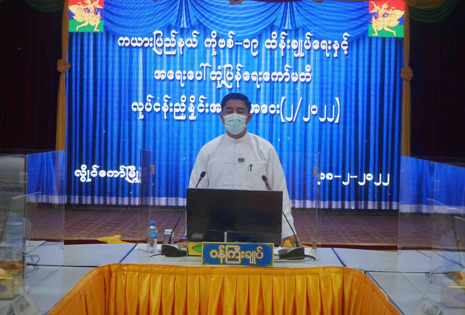 ထို့နောက် ကယားပြည်နယ် ကိုဗစ်-၁၉ ထိန်းချုပ်ရေးနှင့် အရေးပေါ်တုံ့ပြန်ရေးကော်မတီ ဥက္ကဋ္ဌ၊ ပြည်နယ်ဝန်ကြီးချုပ်က တင်ပြဆွေးနွေးမှု အပေါ် ညှိနှိုင်းဆောင်ရွက်ပေးခဲ့ပြီး နိဂုံးချုပ်အမှာစကား ပြောကြားခဲ့ကြောင်း သိရသည်။