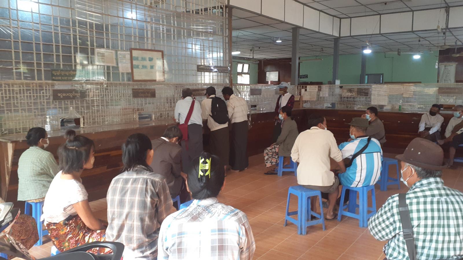 ကရင်ပြည်နယ်၊ ဘားအံခရိုင်၊ လှိုင်းဘွဲမြို့နယ် မြန်မာ့စီးပွားရေးဘဏ်တွင် ပင်စင်စားအငြိမ်းစား ဝန်ထမ်းများအား ပင်စင်လစားများကို ယနေ့နံနက်ပိုင်းက ကိုဗစ်-၁၉ ရောဂါ ကာကွယ်ရေး လမ်းညွှန်ချက်နှင့်အညီ ထုတ်ပေးလျက်ရှိကြောင်း သိရသည်။