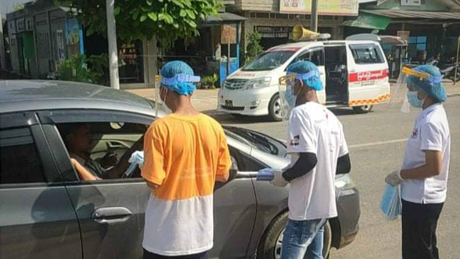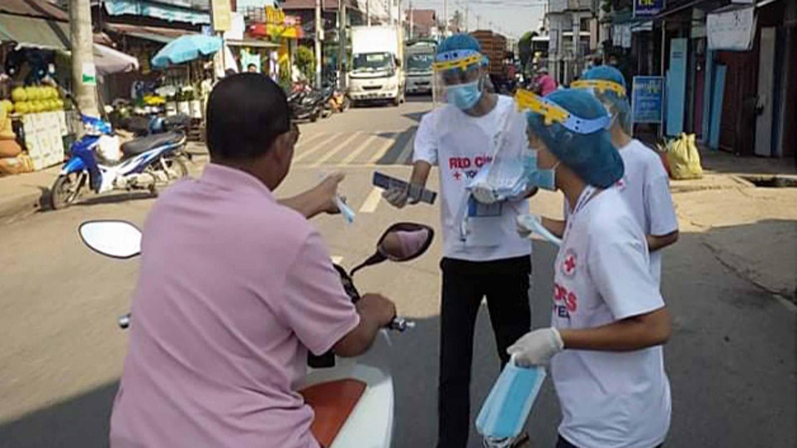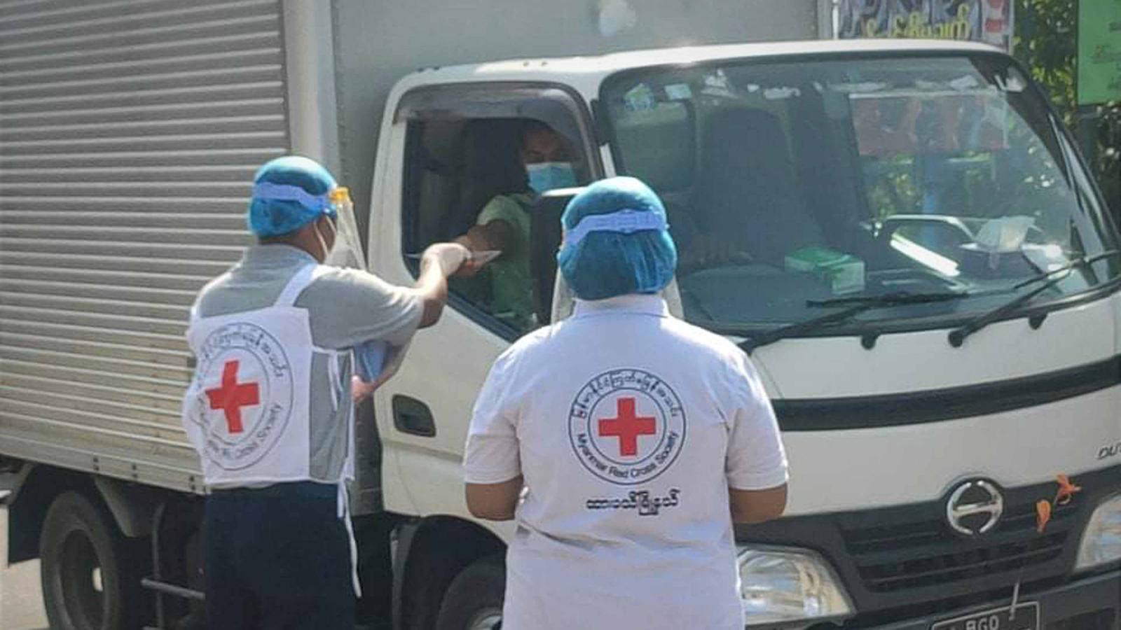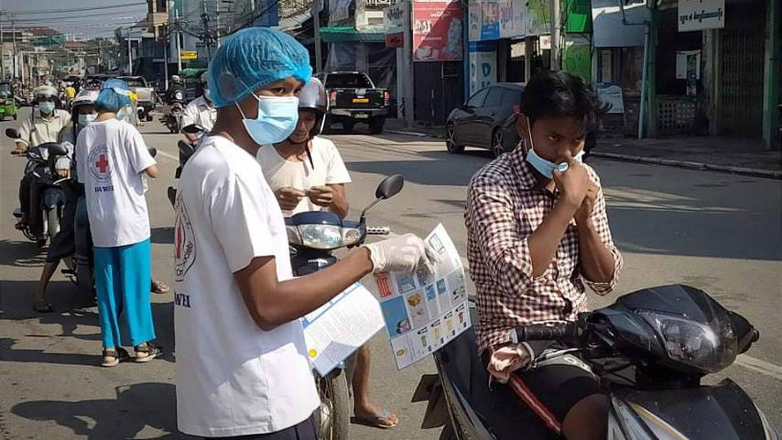 ထို့နောက် ကြက်ခြေနီသူနာပြုတပ်ဖွဲ့များက စျေး၊ လမ်းဆုံလမ်းခွ၊ ကားဂိတ်များနှင့် သွားလာလျက်ရှိသော အများပြည်သူများအား နှာခေါင်းစည်း Μask တပ်စေလိုသောအားဖြင့် အများပြည်သူများအား နှာခေါင်းစည်း Μask များ ဖြန့်ဝေပေးခြင်း၊ အများ ပြည်သူမြင်နိုင်သော နေရာများတွင် အသိပညာပေး ပိုစတာများ ကပ်ပေးခြင်းနှင့် ကိုဗစ်-၁၉ ရောဂါ ကူးစက်မှုမဖြစ်စေရန်ဆောင်ရန်/ရှောင်ရန် အချက်များပါရှိသည့် လက်ကမ်းစာစောင်များ အခမဲ့ဖြန့်ဝေပေးခဲ့ သည်။