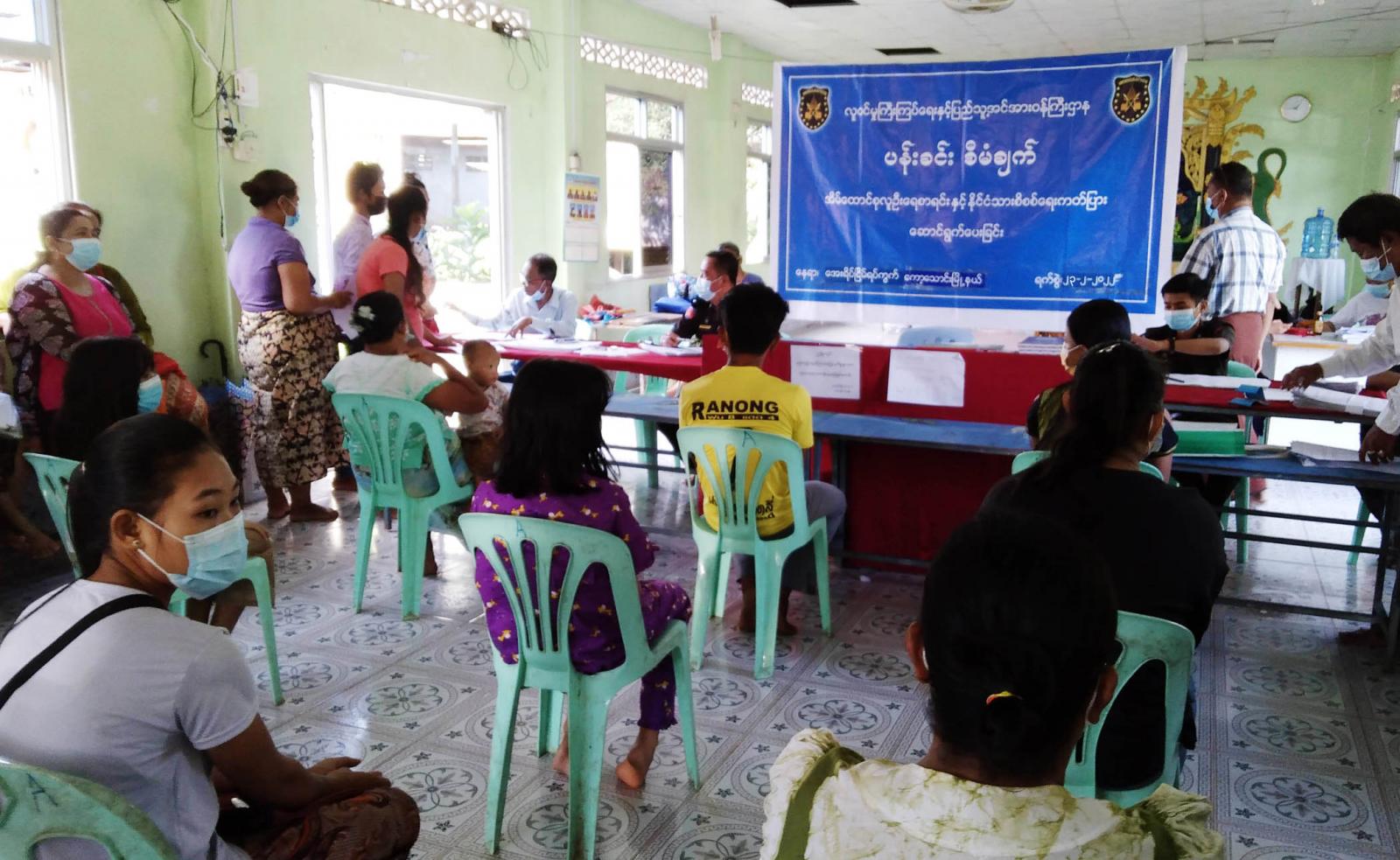 ကော့သောင်းခရိုင်၊ ကော့သောင်းမြို့နယ်တွင် လူဝင်မှုကြီးကြပ်ရေးနှင့် ပြည်သူ့အင်အားဆိုင်ရာ ကော့သောင်းမြို့နယ်ဦးစီးမှူးရုံးမှ ပန်းခင်းစီမံချက်ဖြင့် နိုင်ငံသားစိစစ်ရေး ကတ်ပြားများကို ကိုဗစ်-၁၉ရောဂါ ထိန်းချုပ်မှုလုပ်ငန်းစည်းကမ်းချက်များနှင့်အညီ စဉ်ဆက်မပြတ်ဆောင်ရွက်ပေးလျက်ရှိရာ ယမန်နေ့နံနက်ပိုင်းက ကော့သောင်းမြို့ပေါ် ရပ်ကွက်တစ်ခုဖြစ်သည့် အေးရိပ်ငြိမ် ရပ်ကွက်အတွင်း ကွင်းဆင်းဆောင်ရွက်ပေးခဲ့ကြကြောင်း သိရသည်။