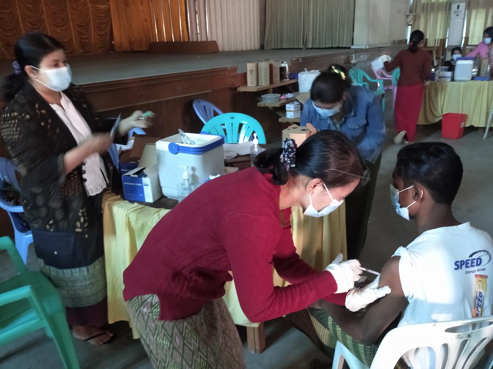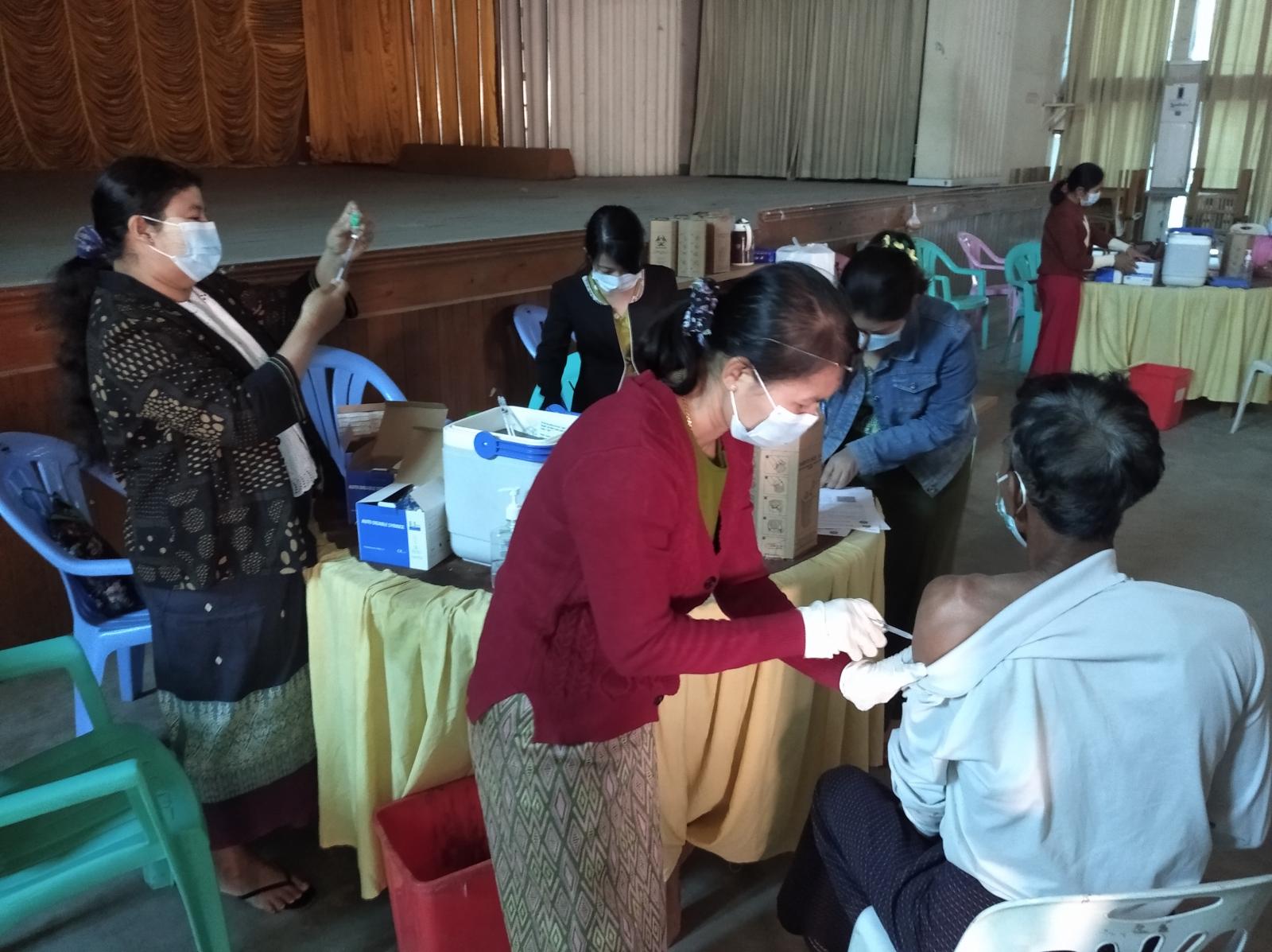 ကိုဗစ်-၁၉ရောဂါ ကာကွယ်ဆေးများထိုးနှံရာတွင် သံဃာတော်(၂၅)ပါး၊ အစိုးရကျန်းမာရေးဝန်ထမ်း (၃) ဦး၊ နိုင်ငံ့ဝန်ထမ်း(၁၂)ဦး၊ ပုဂ္ဂလိကစက်ရုံအလုပ်ရုံဝန်ထမ်း(၉၁)ဦး၊ ပုဂ္ဂလိ ကပို့ဆောင်ရေးလုပ်ငန်း (၁၄)ဦး၊ ပုဂ္ဂလိကဘဏ်ဝန်ထမ်း (၃)ဦး၊ ပုဂ္ဂလိကပညာရေးဝန်ထမ်း(၁)ဦး၊ အခြားဝင်ငွေရ လုပ်ငန်း လုပ်ကိုင်သူ(၂၅၇၀)ဦး၊ စားသောက်ဆိုင် လုပ်ငန်း လုပ်ကိုင်သူ(၅)ဦး၊ ပြည်သူ(၁၀၅၂)ဦး၊ မသန်စွမ်း(၂)ဦး၊ စုစုပေါင်း(၃၇၇၈)ဦးအားထိုးနှံပေးပြီးဖြစ်ကြောင်း သိရသည်။