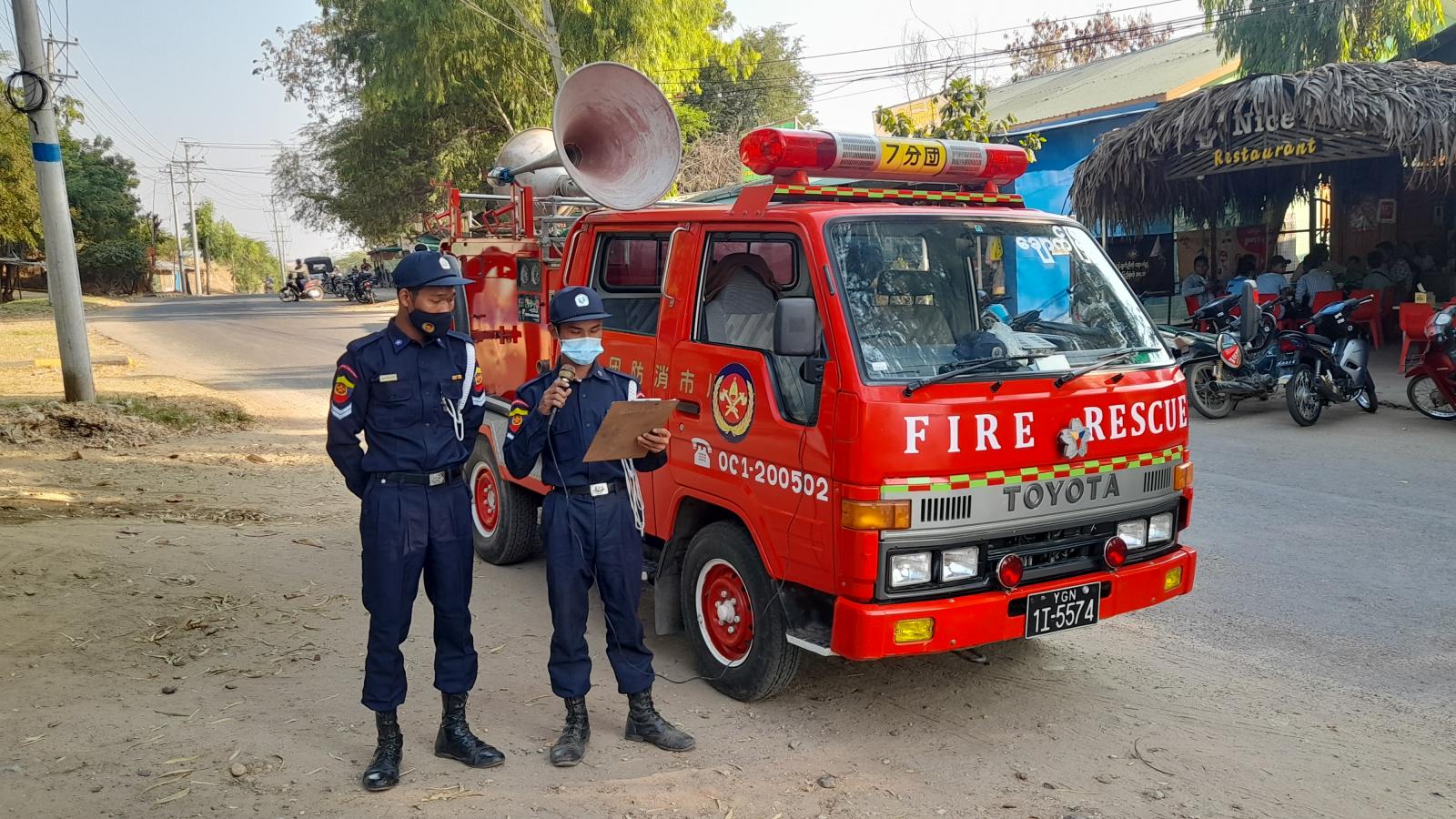 မကွေးတိုင်းဒေသကြီး၊ မကွေးခရိုင်၊ ချောက်မြို့၌ မီးဘေးအန္တရာယ် ကြိုတင်ကာကွယ်နိုင်ရေး အသိပေးနှိုးဆော်ခြင်းကို မြို့နယ်မီးသတ်ဦးစီးအရာရှိ ဦးသိန်းဇော်ဝင်း စီစဉ်ကြီးကြပ်မှုဖြင့် မြို့နယ် မီးသတ်တပ်ဖွဲ့ဝင်များက ယမန့်နေ့ ညနေပိုင်းတွင် ချောက်မြို့ပေါ်ရပ်ကွက်များ၌ အသံချဲ့စက်ဖြင့် အသိပေးနှိုးဆော်ခဲ့သည်။