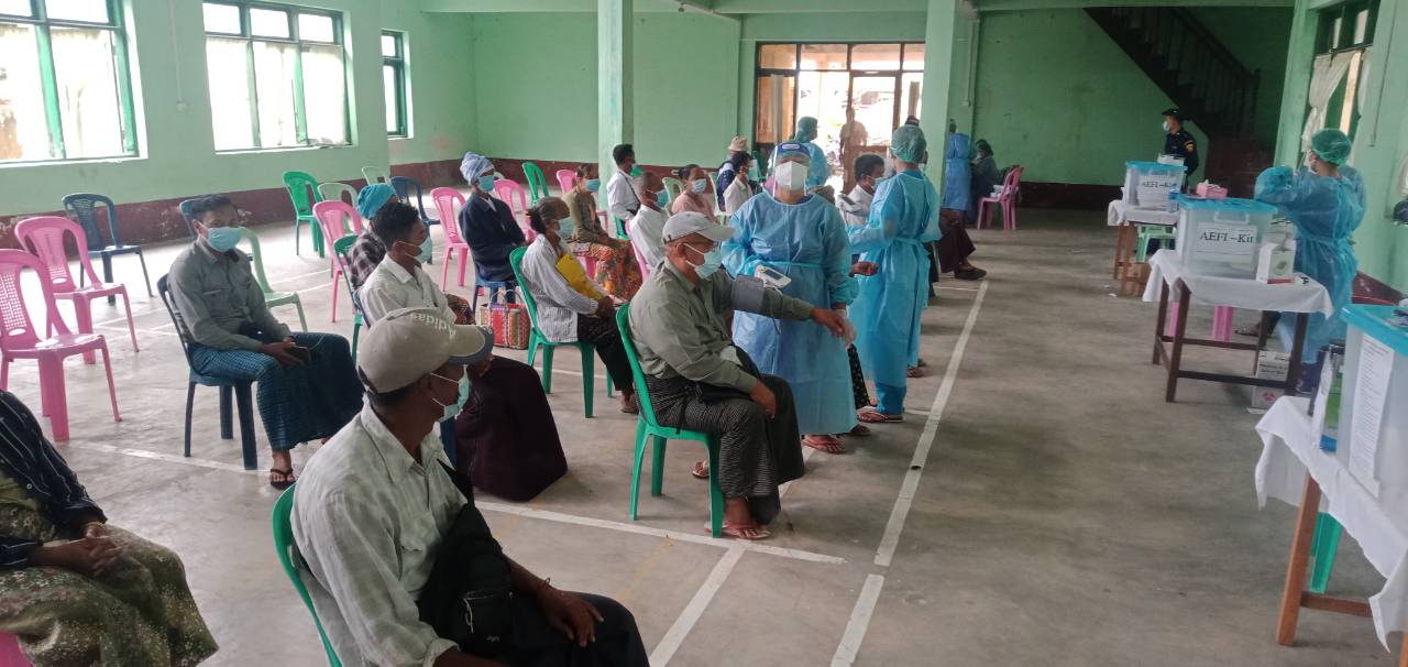 Covid19ရောဂါကာကွယ်ဆေးများ ထိုးနှံပေးခြင်းဆောင်ရွက်ပေးရာတွင် မြို့ပေါ်ရပ်ကွက်/ ကျေးရွာအုပ်စုများရှိ အသက်(၆၅)နှစ်အထက်ရှိသူများ၊ ဒေသခံပြည်သူများအား ကိုဗစ်-၁၉ ရောဂါကာ ကွယ်နိုင်ရေးအတွက် ကျန်မာရေးဝန်ကြီးဌာန၏ လမ်းညွှန်ချက်များနှင့်အညီ ကျန်းမာရေးစစ်ဆေးပေးခြင်း၊ သွေးပေါင်ချိန်တိုင်းတာပေးခြင်း၊ ကိုယ်ရေး အချက်အလက် စာရင်းများ ရေးသွင်းခြင်းများဆောင် ရွက်ခဲ့ပြီးသတ်မှတ် စည်းကမ်းများနှင့် ကိုက်ညီသူများ ကိုကာကွယ်ဆေးများ ထိုးနှံပေးလျက်ရှိပြီး ဝမ်းတွင်းမြို့နယ်အနေဖြင့် FirstDose (၁၉၈)ဦး၊ SecondDose(၉၉၀)ဦးကျန်းမာရေးကောင်းမွန်သူအသက်(၆၅)နှစ်အထက်ရှိသူများနှင့် ဒေသခံပြည်သူစုစုပေါင်း (၁၁၈၈)ဦးအား ကာကွယ်ဆေးများ ဆက်လက်ထိုးနှံပေးခဲ့ကြောင်း သိရသည်။