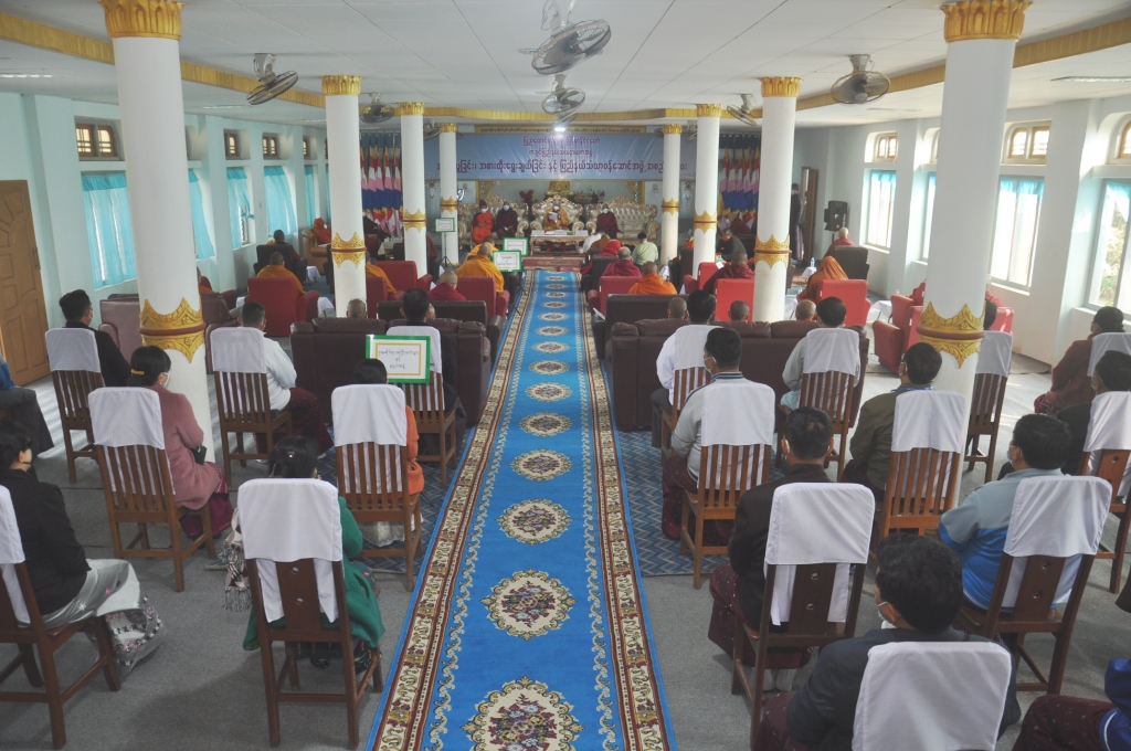 ဆက်လက်၍ သဘာပတိဆရာတော် နိုင်ငံတော်သံဃမဟာနာယကအဖွဲ့တွဲဘက် အကျိုးတော် ဆောင် အဂ္ဂမဟာဂန္ထဝါစကပဏ္ဍိတ ဘဒ္ဒန္တဓမ္မာစာရက ဩဝါဒကထာ မြွတ်ကြား ပြီး ပြည်နယ်အစိုးရ အဖွဲ့ဝန်ကြီးချုပ်ကိုယ်စား လူမှုရေးဝန်ကြီးက သာသနာရေးဆိုင်ရာများကို လျှောက်ထားသည်။