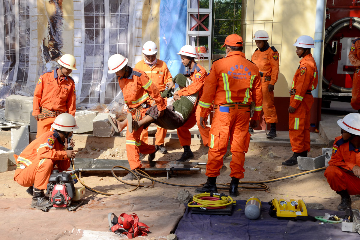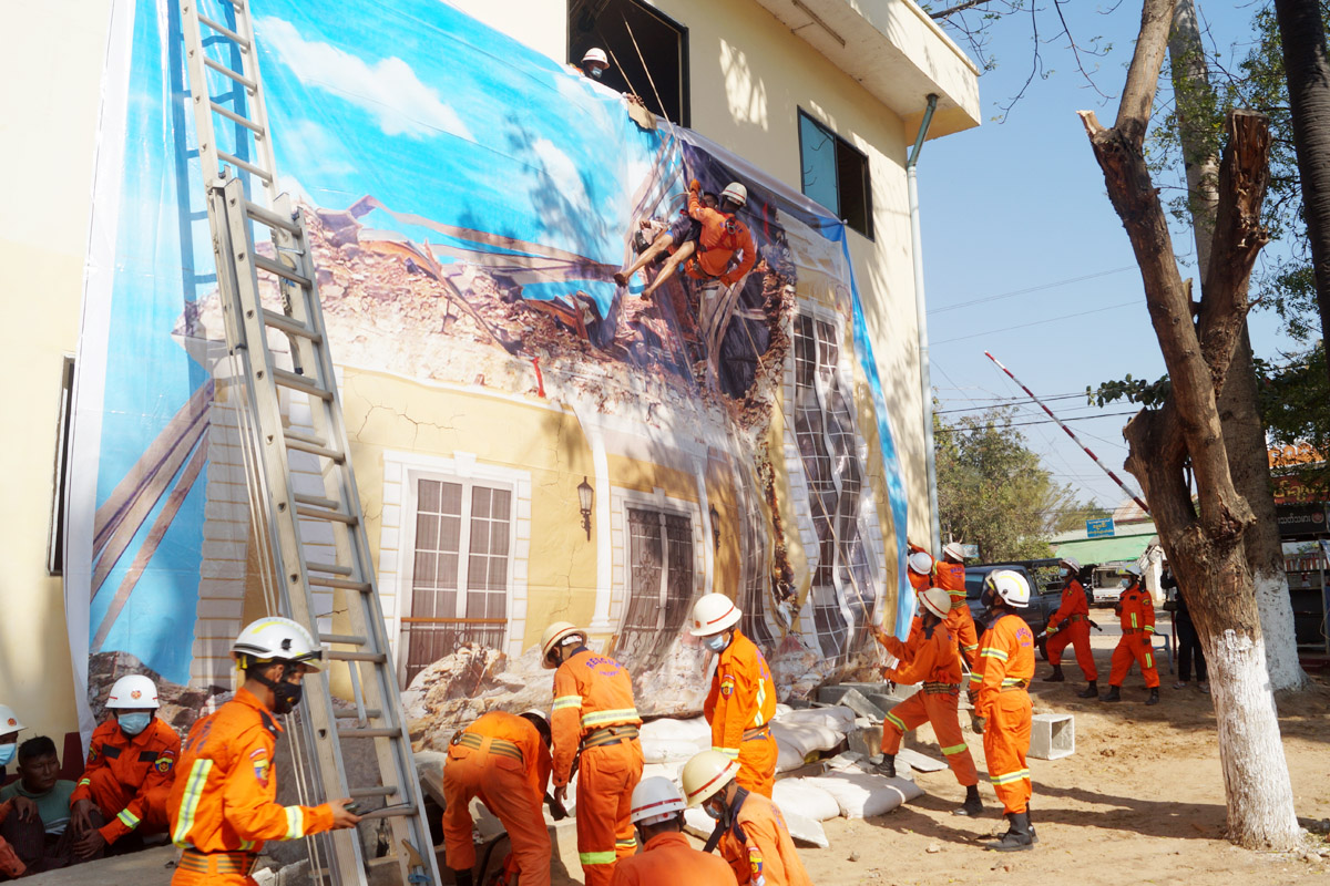 မန္တလေးတိုင်းဒေသကြီး၊ ညောင်ဦးခရိုင် ကျောက်ပန်းတောင်းမြို့နယ် မီးသတ်ဦးစီးဌာနမှ ငလျင်ဘေးဒဏ်ဆိုင်ရာ ရှာဖွေကယ်ဆယ်ရေးလုပ်ငန်းများ ဇာတ်တိုက်လေ့ကျင့်ခြင်း ကို၊ ဖေဖော်ဝါရီ(၂၆)ရက်နေ့ နံနက်(၉) နာရီက အဆိုပါ မီးသတ် ဦးစီးဌာနရုံးတွင် နိုင်ငံတကာ စံသတ်မှတ်ချက်များနှင့်အညီ ဇာတ်တိုက်လေ့ကျင့် ဆောင်ရွက်ခဲ့ကြောင်း သိရ သည်။
