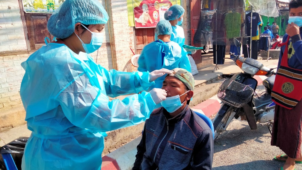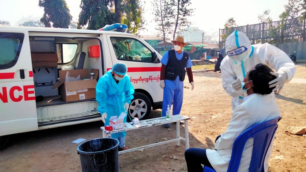 အိုမီခရွန်အပါအဝင် ကိုဗစ်-၁၉ မျိုးဗီဇပြောင်းရောဂါပိုးများ ကူးစက်ပြန့်ပွားမှုမရှိစေရန် ရှမ်းပြည်နယ် ညောင်ရွှေမြို့တွင် ပါးစပ်နှင့် နှာခေါင်းစည်း (Mask) တပ်ဆင်ခြင်းမရှိဘဲ သွားလာနေသည့် ပြည်သူများအား ကိုဗစ်-၁၉ ရောဂါပိုး ရှိ/မရှိ RDT Test Kit ဖြင့် ရှောင်တခင် စစ်ဆေးခြင်းကို ယနေ့ နံနက်ပိုင်းက မြို့မမင်္ဂလာဈေးမီးပွိုင့်နှင့် မြို့အဝင် လမ်းဆုံတို့၌ ဆောင်ရွက်ခဲ့ကြောင်း သိရသည်။