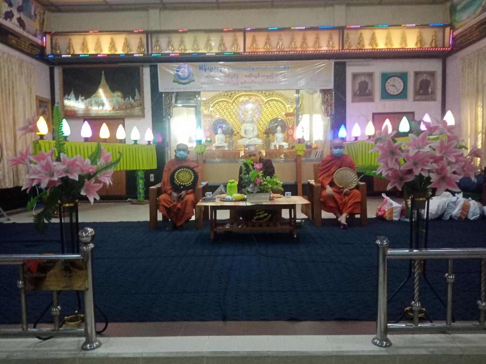 ကျင်းပရာတွင် ဆရာတော်ဘုရားကြီးများဦးဆောင်၍ နာယကကြီးများ မတည်အလှူရှင်နှင့် စိန်ရတနာအသင်း ဥက္ကဋ္ဌ တို့က ဖဲကြီးဖြတ်ဖွင့်လှစ်ခဲ့ပြီး စိန်ရတနာ နာရေးကူညီမှုအသင်း မော်ကွန်း ကမ္ဗည်းအားအမွှေးနံ့သာရည်များဖြင့် ပတ်ဖြန်း သွန်းလောင်း ဖွင့်လှစ်ခဲ့ကြသည်။ထို့နောက် စိန်ရတနာ အသင်းကြီး၏ ဩဝါဒစရိယအဖွဲ့ဥက္ကဋ္ဌ အဘိဓဇမဟာရဌဂုရု- အဂ္ဂမဟာမဏ္ဍိတ အင်းစိန်ရွာမ ပရိယတ္တိစာသင်တိုက် ဆရာတော်ဘုရားကြီး ဘဒ္ဒန္တတိလောကဘိဝံသထံမှ ဩဝါဒကထာ ကို အသင်းဂုဏ်ထူးဆောင်ဥက္ကဋ္ဌမှ ဖတ်ကြားခဲ့ပြီး ပရိတ်သတ်များက သာဓု (၃) ကြိမ် ခေါ်ဆိုခဲ့သည်။